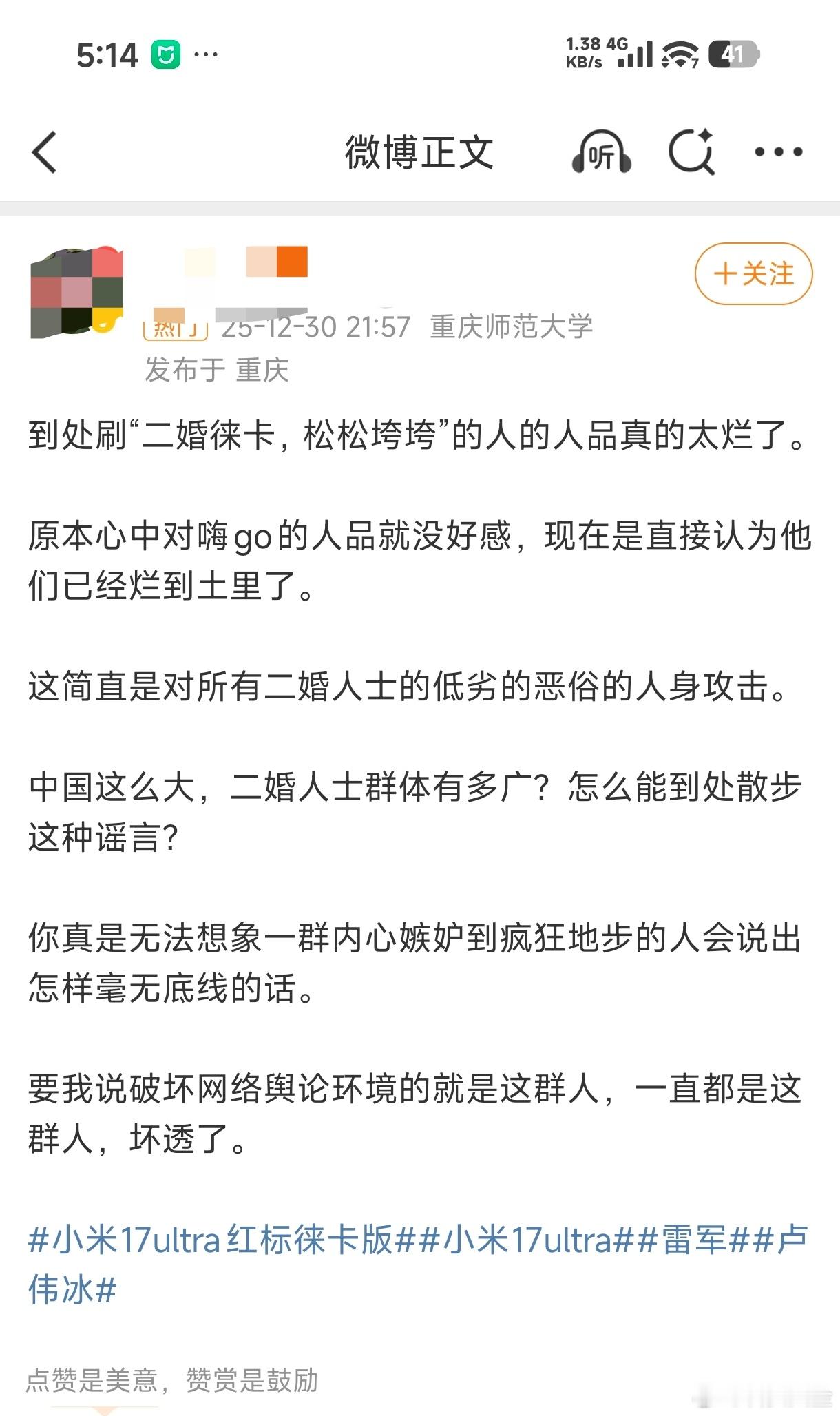 最搞笑的是kml都禁言了,终于安静了…每次都是kml惹起来的,kml是负资产…事实是,没了kml,类似光学防抖打快板的大浪淘沙仍然会出现,甚至这次比以前更严重,疯狂攻击:二婚徕卡、松动正常…说真的,某个群体真是毫无底线,就这还是人吗?小米到底是怎么他们了?为了攻击小米,甚至不惜拉侮辱女性下水?还是那句话,正义不会迟到,谁黑谁白早晚会被看清…