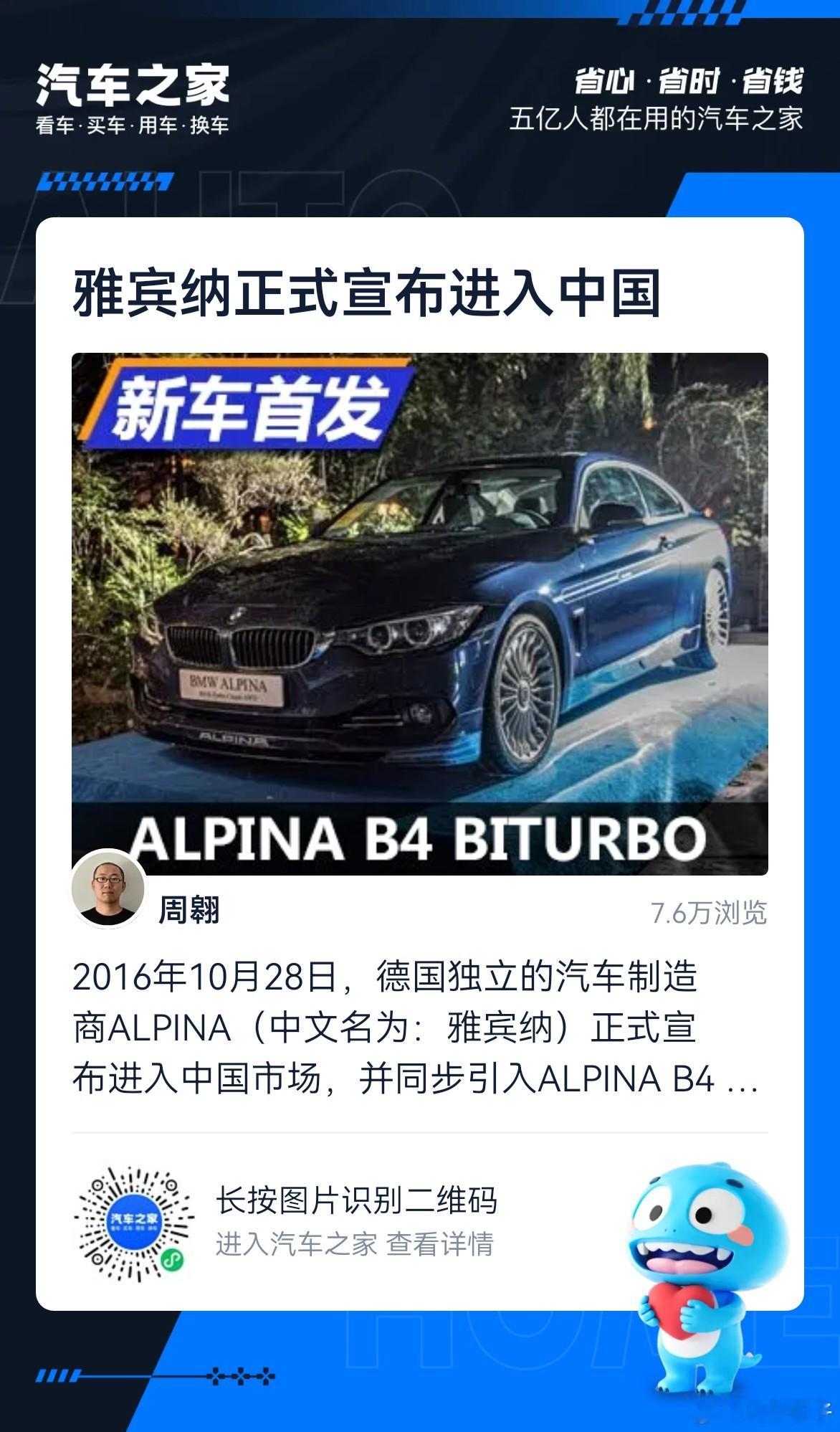 ALPINA阿尔宾娜(又称雅宾纳)正式成为宝马旗下独立品牌聊聊我对这个牌子的看法省流:够独特所以很喜欢其实三年前就听说收购的事 这也是意料之中 毕竟作为一家“小厂”能独立过活到现在很难得阿尔宾娜在此之前有两个重要身份:一个车队和一个正经汽车品牌注意不是改装品牌!是汽车品牌!有独立VIN有点类似于RUF 可以买配件也可以直接购买阿尔宾娜标的整车 一般以B+数字为型号早年前因为改装宝马1500、E9等各种型号跑比赛征战四方 夺冠无数 并提供深度定制高性能改装零件 甚至有宝马官方认证与质保 比宝马M-Power起源还早 有江湖传言称阿尔宾娜启发了宝马M-Power的建立(未经证实) 其地位可见一斑至于整车业务 基本上都是基于宝马车型进行深度改装 但与M-Power最大的不同是 阿尔宾娜更注重平衡高性能与日常豪华巡航体验 其不仅具备媲美同级M-Power的性能(甚至圈速) 更在舒适性与豪华定制方面做到新高度 且基本都是限量小批量生产 还有不少柴油版本型号提供选择不严谨的说类似于911 GT3 RS和911 Turbo S所以很多人以为“阿尔宾娜就是改宝马的作坊”是非常不正确的阿尔宾娜与M-Power对于宝马的理解定位有着本质不同 还有自己独立品牌 不少Bimmer心中认为玩宝马的终点是一台阿尔宾娜而非M-Power几个显著特征也可以简单聊聊(集中在近代车型):发动机/变速箱一定经过深度改装 马力大但很平顺 不是那种很暴躁精神病的特质悬架舒适的同时极限与支撑性也很不错高度定制化内饰 包含真皮与木饰搭配 不显俗气的那种标志性绿色与蓝色车身颜色(当然你也可以选择其他) 搭配白色线条点缀 还有一套低调的小包围套件多辐条轮圈 甚至还有个独立钥匙防盗蓝底仪表再加上限量 其海外二手车保值率远高于同级非特殊版本的M-Power我本人也很迷这个奇怪但又有些倔强执着的劲儿 作为对近代宝马没什么兴趣的我来说 阿尔宾娜却一直在我心中留有一个位置 你看我买模型很少买宝马和M-Power 但阿尔宾娜的怪车还是会偶尔收一收 一度还很想买一台二手B4 然后告诉别人“这不是M4!俗!”冷知识(也可能没那么冷):九年前阿尔宾娜以“雅宾纳”品牌身份小批量正规进口到中国过一些B4 在宝马店里卖 价格和同年M4差不多 只不过没啥人认一度还有过折扣 目前买一台好车况二手B4其实是个好选择 看看海外同年M4和B4二手价格就懂我说的意思了至于作为宝马子品牌以后会是怎样的发展 我猜大概率会类似于奔驰和迈巴赫的关系 毕竟在舒适豪华和定制化方面有着更独到深刻的见解 就是不知道以后阿尔宾娜的标还会不会挂在车头了最后 阿尔宾娜的创始人其实三年前已经去世了 R.I.P.