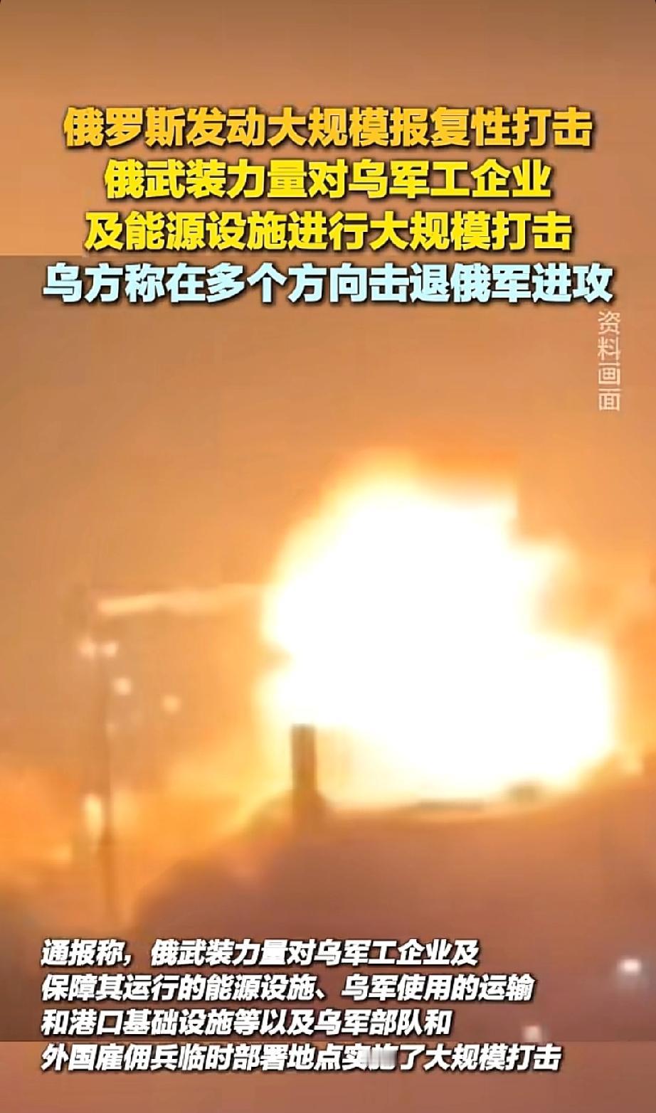 最新消息! 俄罗斯对乌克兰展开大规模报复性打击!俄国防部刚发布的最新通报,已经震惊了全世界。 看来俄军这次是来真的了!1月2日这天,俄国防部突然放出了重磅战报:因为乌克兰之前袭击了俄罗斯的民用设施,所以俄军在过去7天里,对乌克兰展开了一场史无前例的“钢铁风暴”式打击行动。 从最新的战报来看,俄军这次的打击手段也升级了,“匕首”高超音速导弹都用上了。而且打击特别精准,像乌军的无人机工厂、导弹生产车间、燃料存放仓库这些关键地方,36个目标全被精准命中。更让人意外的是,过去一周俄军还接连拿下了9个战略定居点,同时还击落了一架乌克兰的苏-27战机! 有军事专家就分析,这次俄军调整了战术,专门把目标对准了乌克兰的军工“命脉”。那些生产导弹发动机的车间、组装无人机的厂房,现在都成了重点打击的地方。不难看出,俄军就是想彻底切断乌军的“武器供应链”! 这场像钢铁洪流一样的报复行动,让乌克兰好几个城市突然都停电了。有现场视频拍到,基辅郊区的一家军工厂被导弹击中后,升起了上百米高的蘑菇云! 现在战局突然升级了,背后到底有什么原因呢?俄军这次的大规模打击,会不会真的成为改变整个战局的关键转折点?