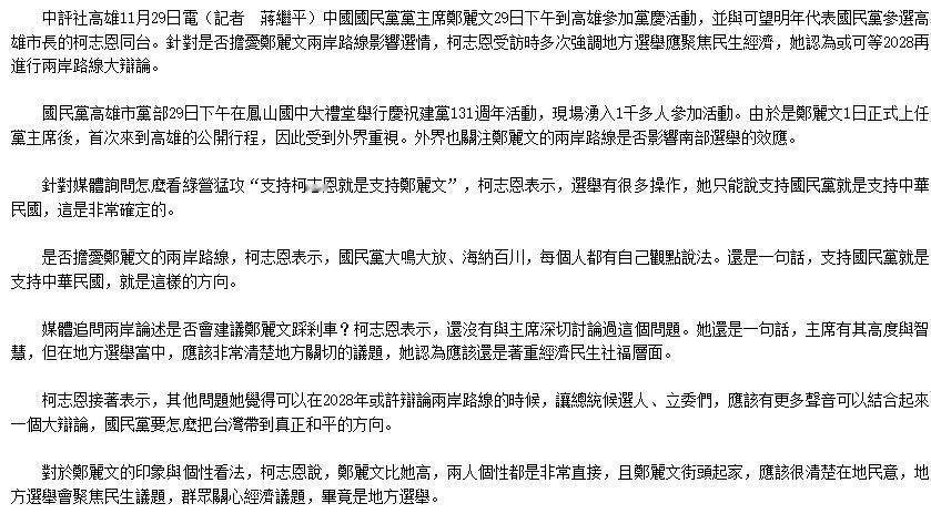 自以为是、狂妄自大。处处与自己党中央唱反调之人,谁愿意重用? 政坛这个地方,从来不是靠聪明赢,而是靠立场站得稳,你再能说会道、再有学历背书,要是拎不清自己是哪个阵营的,迟早会吃大亏。 这不,柯志恩这次在国民党中央委员选举中落马,听起来像是个意外,其实一点都不突然,她这几年在党内的表现,说白了,就是太把自己当回事了,话多手多,最后连自己人都懒得保她了。 有人说她是“人才”,是“中间路线”的代表,可问题是,在国民党这种讲究纪律和路线统一的党里,你整天说些和党中央不一样的话、做些让人看不懂的动作,那就是典型的“离经叛道”。 就算你是高雄市长参选人,就算你有朱立伦的背景撑腰,只要你在党内不合群,不听招呼,迟早会被边缘化。 这几年,柯志恩在党里的存在感确实不低,但她的高调,很多时候都是在制造“分裂感”,她搞的是“地方优先”,嘴上说的是“民生议题”,可骨子里呢,就是在回避国民党的核心主张。 党中央在喊“九二共识”,她却说不急,选完地方再说;别人想去大陆交流,她就强调“要对等”,听起来好像是理性,实际上就是在拆台,给党中央添堵。 更要命的是,她还不止一次在关键场合阴阳怪气地表达不满,媒体上、社交平台、甚至党内会议,她总是那副“我不一样”的姿态,别人忙着统一口径,她偏要跳出来讲自己的“高见”。 久而久之,党内很多人都觉得她这人嘴太碎、心太野,不是一个可以一起打硬仗的人。 尤其是最近那场风波,彻底把她推上了风口浪尖,王金平摆宴请客,她风风光光地坐在主桌,满口都是“国民党靠他才有希望”。 这话传出去,郑丽文脸上能挂得住吗?一个是现任党主席,一个是退休元老,她偏偏选边站队,还站得那么直白,这种政治敏感度,说好听是“直率”,说难听点就是不知轻重。 你要知道,国民党现在的处境不容乐观,接连几次选战都没讨到好果子吃,党内早就有一股风气:要整顿、要团结,不容许再有人各唱各的调。 在这个时候,柯志恩还在搞自己的“地方派系路线”,那自然是自绝于主流,她不是不明白这点,而是太相信自己那套“务实本土化”的策略,觉得只要能赢高雄的选票,党中央也得让着她。 可惜,党是靠人撑起来的,不是靠你一个人耍聪明就能撬动的,这次中央委员选举,很多人都看得很清楚:不是她能力不行,而是她态度太飘,别人都在讲忠诚、讲路线,她却在讲“选票导向”。 你说你为了赢选战,把重点放在经济、民生上,这没错;但你不能因此就对党的核心立场模棱两可,甚至动不动公开质疑,你站在党内的位置,不能只想着“选得上”,更要考虑“站得住”。 更别说她还拿着党中央的提名,吃着党的资源,转头却和地方派系搓堆,搞得好像自己才是高雄的“正统代表”。 这种“吃里扒外”的做法,放在哪个政党都会被记上一笔,党内不少人心里都憋着一口气:你要是真的本事大,能靠自己打赢高雄,那就另说;可你现在是靠党给你铺的路,却又不听党的话,这谁看了都会觉得别扭。 说到底,政治这回事,不是你想怎么来就怎么来,尤其是在国民党这种讲规矩、讲传统的组织里,你要么听话,要么出局。 柯志恩这次的落选,其实就是党内给她的一个“信号”:你要么调整,要么退出核心圈,不是不让你有意见,但你不能天天扯后腿,搞得大家都没法往前走。 更何况,国民党现在是在一个“重建期”,需要的是能帮党扛事、稳军心的干部,像柯志恩这种“自己有想法,别人别管我”的风格,在选战可能能博眼球,但在党内架构里,就是一个不稳定因素。 她的落选,不是单纯的“人事安排”,而是一次“政治定调”:党不欢迎那些不听话的人。 当然,也有人会觉得,这样的处理是不是太绝了,毕竟柯志恩也算是有才华、有经验的人才,但问题是,党不是学术机构,不是看你有几个头衔,而是看你能不能服从大局。 你再有能力,如果每天都在唱反调,那不叫“人才”,那叫“麻烦制造者”,一个党要想重新站起来,最忌讳的就是这种“内部不稳”。 从这个角度看,柯志恩的落选,其实是国民党一次“自我清理”的尝试,把话说白了,就是要把那些模糊不清、态度不明的人排除在外,好让剩下的人能拧成一股绳。 她这几年靠着“中间路线”混得风生水起,可到了真刀真枪的时候,党还是选择了那些“路线明确”“立场坚定”的人,这是现实,不是情绪。 从未来来看,柯志恩还会继续选高雄市长,这一点不会变,但她的党内地位,已经发生了实质性的变化,没有了中央委员的身份,她在党内讲话的分量自然就轻了。 更重要的是,党内很多人已经开始对她持观望态度,不再像以前那样把她当成“明日之星”,她要想翻身,不仅得拿出成绩,更要重新调整自己的态度和定位。 对于国民党来说,这场人事调整只是开始,接下来,党内还会有更多的整合、更多的抉择,路线怎么走、哪些人能留下、哪些话该说,这些都不是小事。