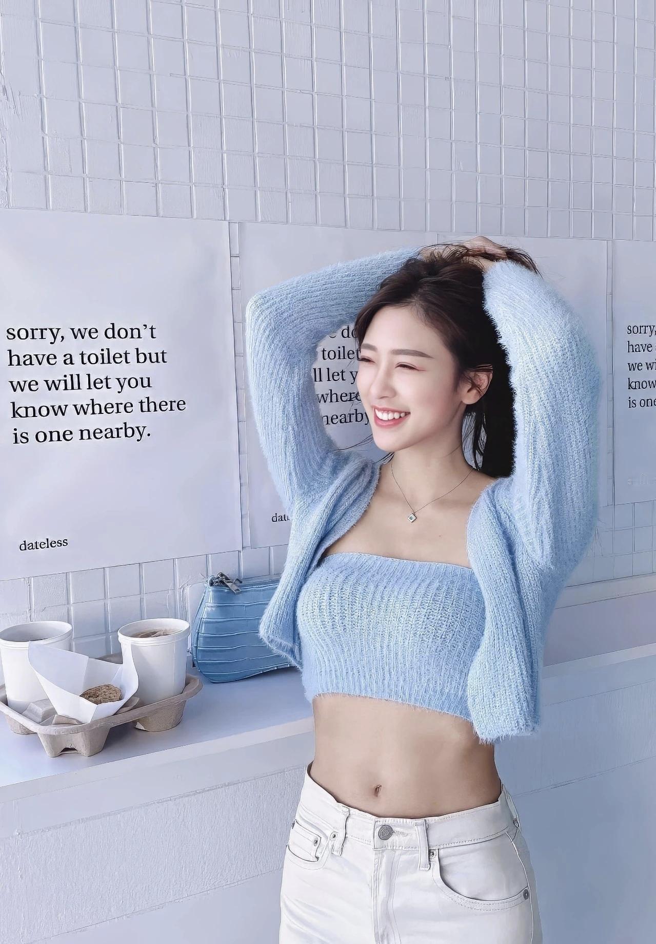 浅蓝针织衫的温柔,是属于春日的小美好呀~