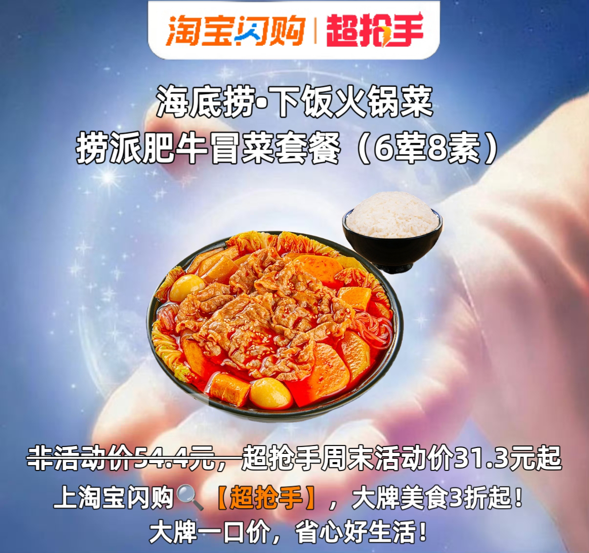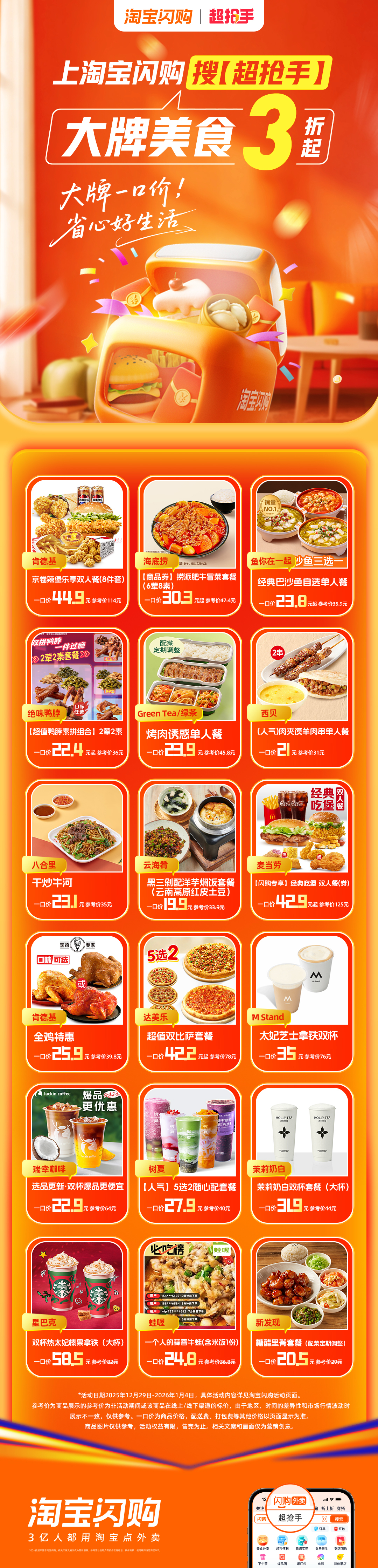 开年聚餐,图个热闹更图个省心!上淘宝闪购超抢手海底捞冒菜套餐31.3元起,暖心暖胃;达美乐双比萨套餐42.2元起,硬菜都备齐了,送到家还是热腾腾。大牌一口价,省心好生活。省下煎炒烹炸的工夫,全家围坐碰杯,聊聊新年新愿望,团聚的温暖就该这么简单。上淘宝闪购搜【超抢手】,大牌美食3折起。超抢手省心好生活元旦省心美食follow幂选超抢手