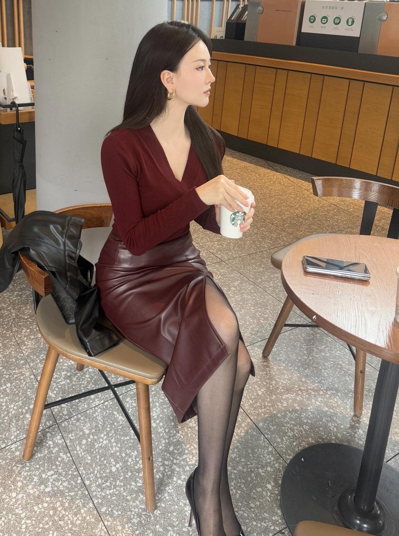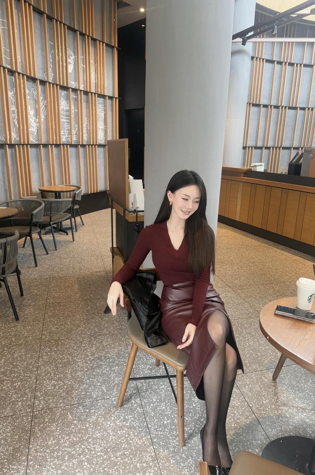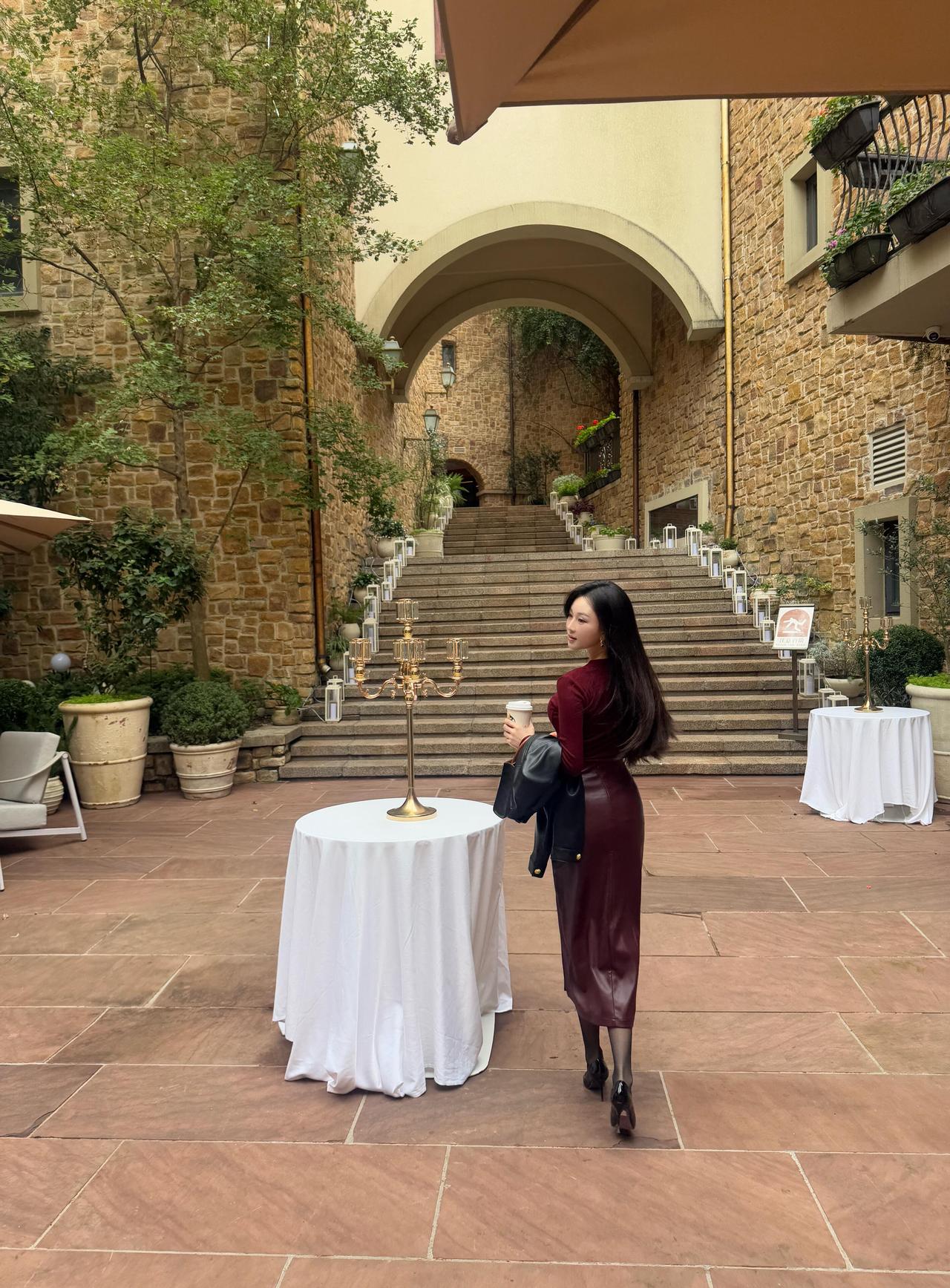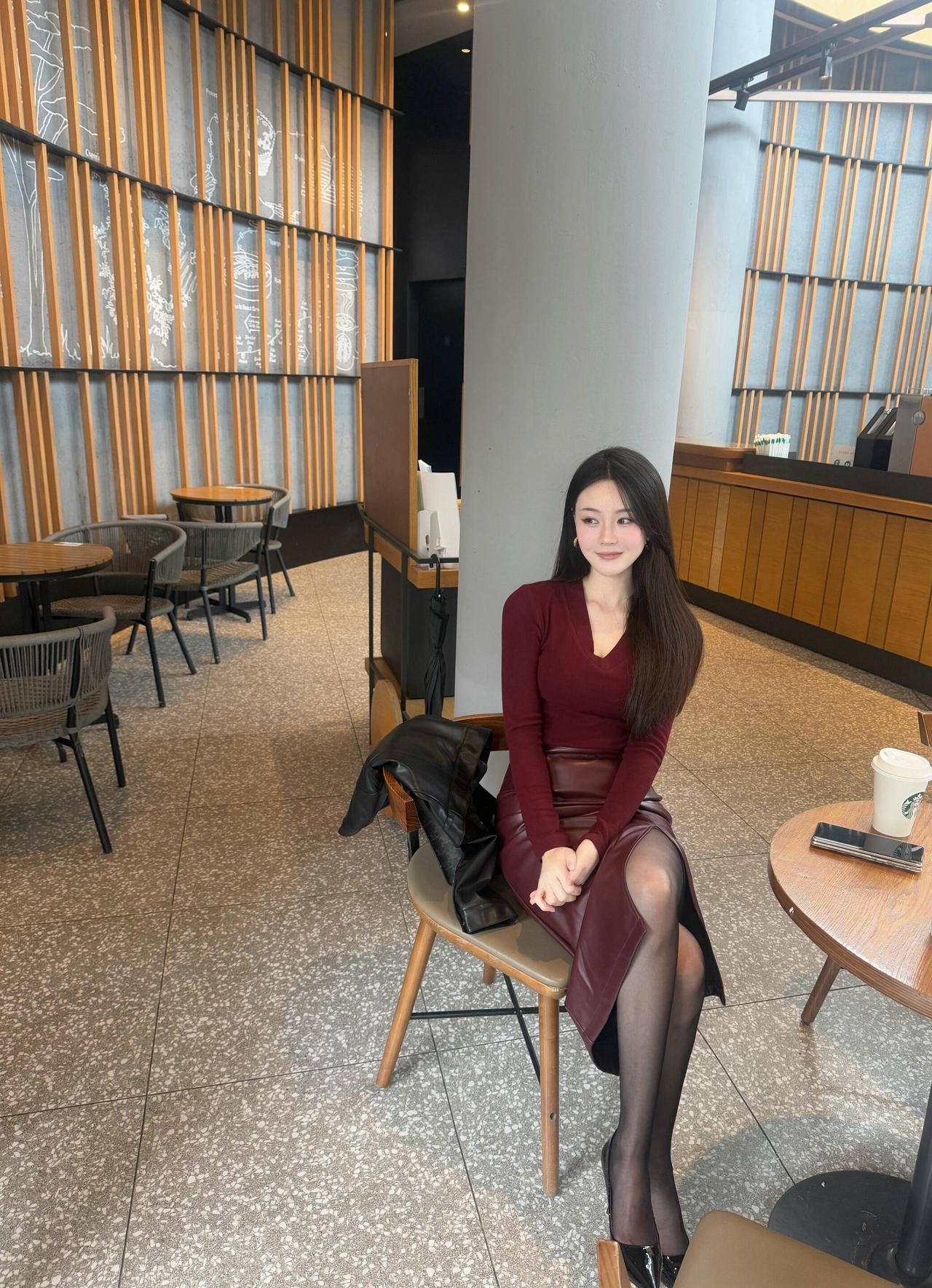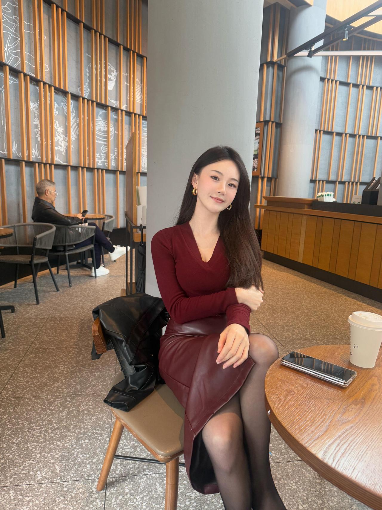 酒红裙的午后(抒情诗) 咖啡杯的温度透过指尖漫上来时 酒红的裙摆正贴着椅面 像一汪揉皱的赤霞 皮裙的纹路蹭着布艺坐垫 带着一点冷硬的柔 和咖啡的暖撞个满怀 我把胳膊搭在椅背上 看木桌的纹理绕着手机蜷曲 远处的咖啡机嗡嗡响 像只慵懒的蜜蜂 在空气里酿着焦糖色的蜜 黑丝裹着的脚踝轻点地面 高跟鞋的跟敲出细碎的节拍 和店里的轻音乐缠在一起 走出咖啡店时 石墙的粗粝蹭着眼角的余光 陶土色的砖缝里 藏着几缕绿藤的软 我弯腰凑近那瓶玫红的花 花瓣的绒面擦过鼻尖 香得轻软,像谁在耳边说的悄悄话 手袋上的CELINE字母蹭着掌心 和花的红、裙的酒红叠在一起 像把午后的浓艳 都攥进了手里 转身时,裙摆扫过白色桌布 带起的风掀动了花茎 晃出一串细碎的影 石阶在脚下延伸 酒红的裙摆在身后晃 像曳着一段流动的晚霞 手搭在石质栏杆上 凉意在指尖散开 长发垂下来,扫过后背 和皮裙的凉、石栏的冷 揉成了温柔的茧 往上走时,脚步放得很慢 听鞋跟敲在石阶上的声响 在石墙间绕了又绕 像把午后的时光 也敲得慢下来 风从拱门穿过来 掀动裙摆的一角 也掀动了心里那片 软软的、懒懒的云 忽然觉得 这样的午后就该这样过 不用赶时间,不用想琐事 只跟着酒红的裙角走 让咖啡的暖留在指尖 让花的香绕在鼻尖 让石阶的凉 把浮躁都磨平 就做个被时光偏爱的旅人 在砖红与酒红的底色里 把自己,融进这温柔的人间