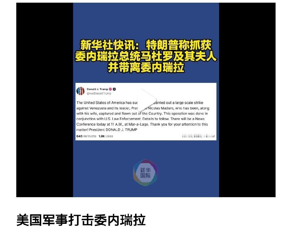 当我们还沉浸在过元旦的欢乐气氛中时, 美国出兵委内瑞拉,抓走了人家的总统和夫人。为什么偏偏在这个时候动手?委内瑞拉到底怎么得罪了美国? 有分析指出,委内瑞拉有两个“原罪”,一是发现了好多石油,一是有石油的委内瑞拉不听美国的话。 这个世界,不听美国的国家不能说很多,但也不在少数。美国选择元旦节拿委内瑞拉开刀,像是算准了时间给谁看,这个谁是谁,不言而喻。 美国还是那个霸权主义横行的美国,惯于绕过联合国对别国采取军事行动,一个联合国的缔约国不遵守联合国宪章,一个用一袋洗衣粉发动一场战争的美国,把“顺我者昌逆我者亡”明晃晃地写在了脸上。委内瑞拉去联合国讲理,有用吗? 说到底,这个世界的道理就是拳头说了算。什么是道理?如果美国认为符合美国利益就是道理,委方何不效仿效仿?