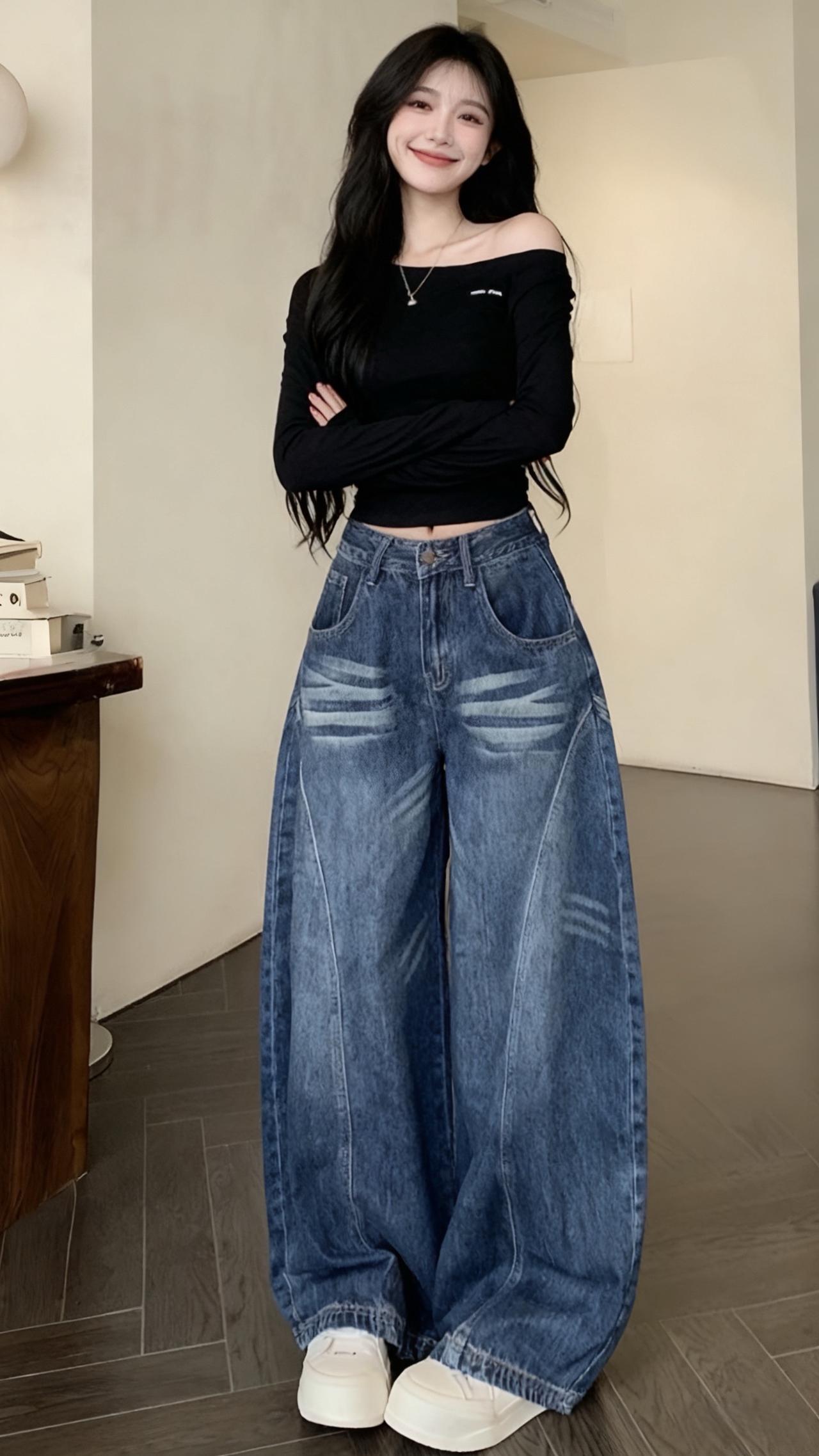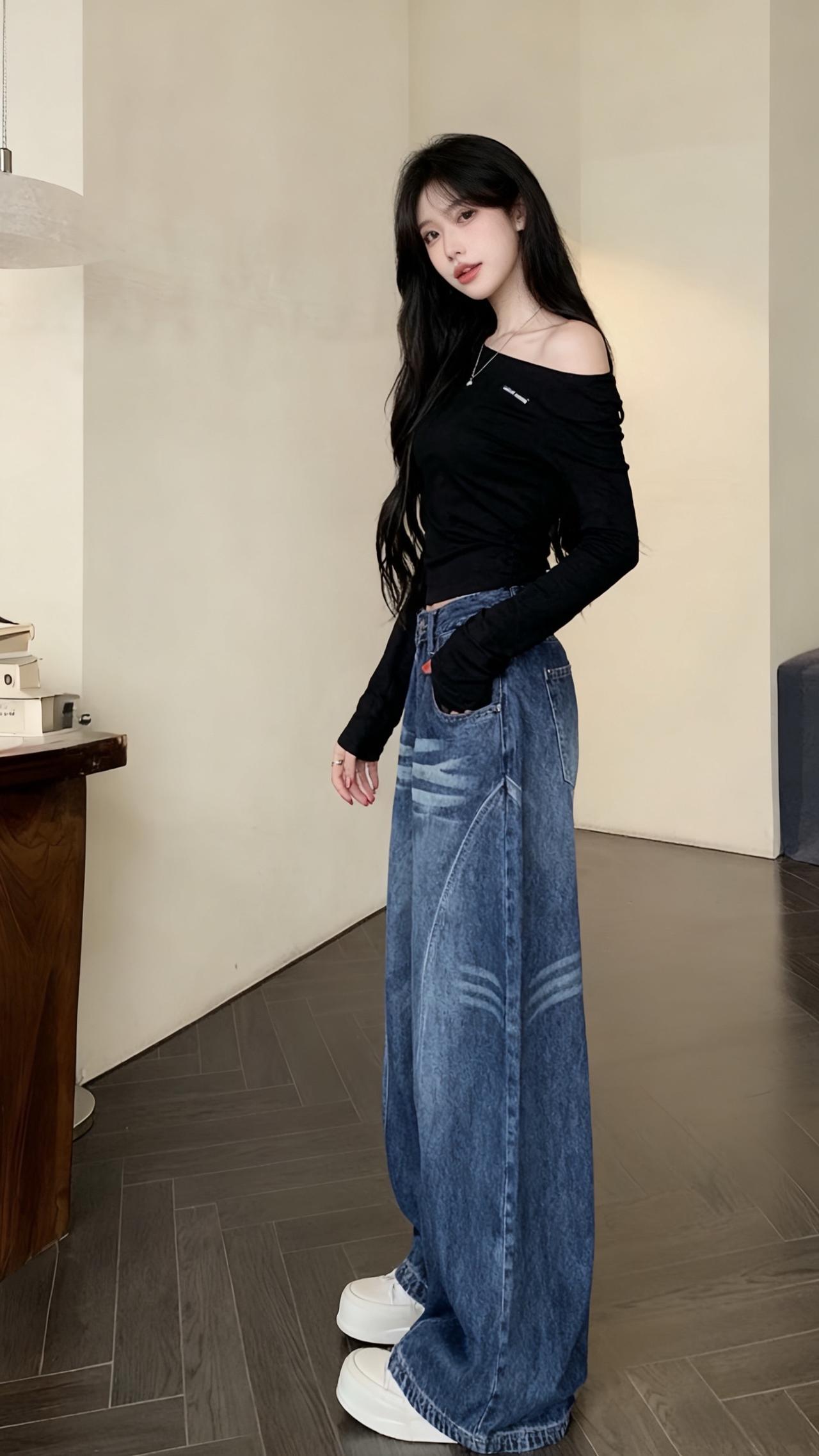 小个子穿搭 百搭阔腿裤 美式穿搭休闲裤