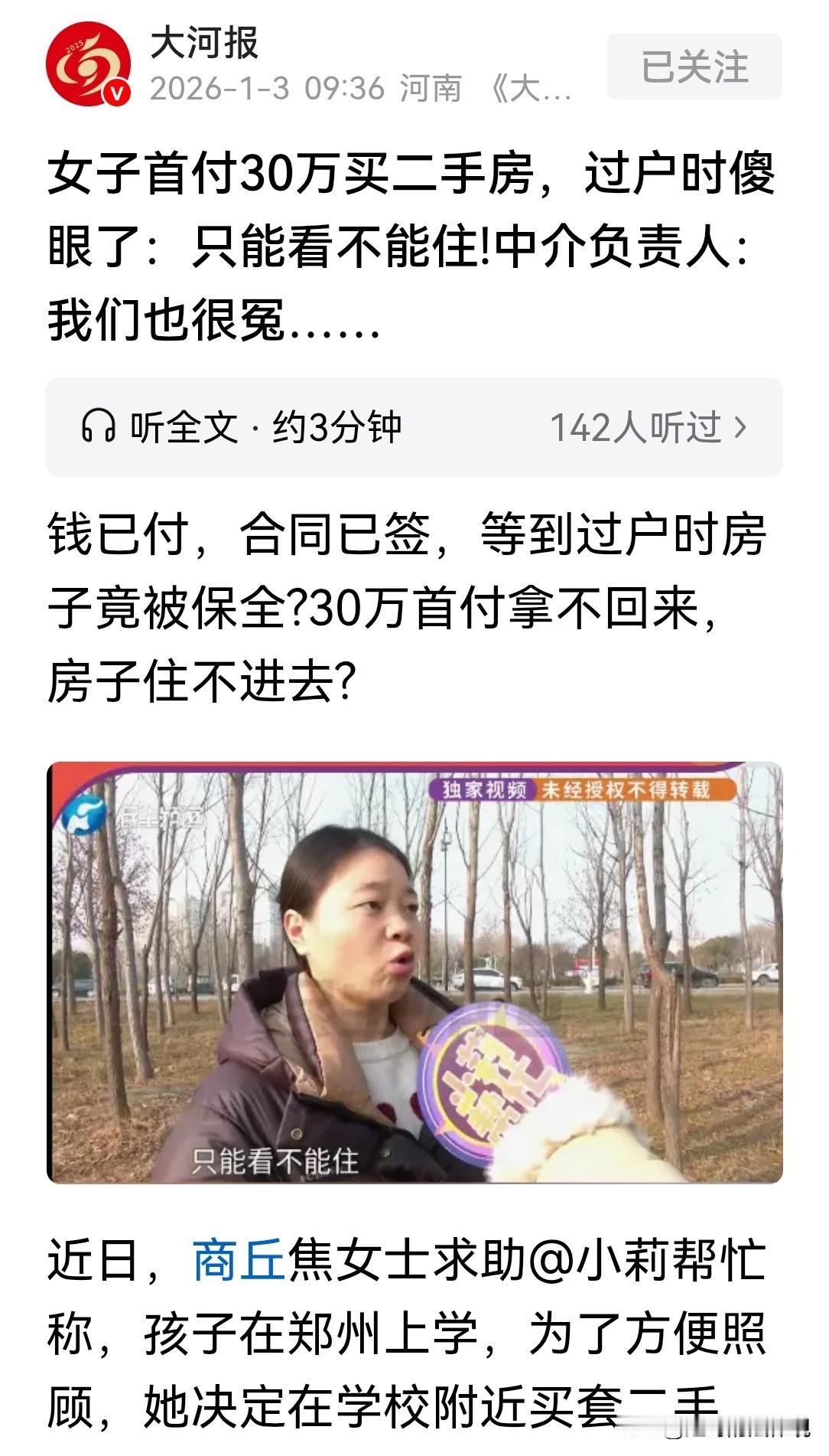 河南郑州,女子因为孩子上学,想在学校附近买一套二手房。经中介推荐,她相中了一套3室1厅的房子,价格97万元。谁知,购房合同也签了,30万元的首付也交了,就连贷款都办好了,可就在去办理房产过户时,女子被告知,房子被法院保全,无法办理任何交易,根本过不了户。女子顿时懵了,主要的是房主失联,30万首付款拿不回来,女子联系中介后才得知,原来房主卖房另有蹊跷。 商丘的焦女士,因为孩子在郑州上学,为了方便照顾,他们决定拿出全部积蓄,买一套学区房。 2025年的11月份,焦女士在某中介的推荐下,经过看房后,还真相中了一套房子。 这套房子的地理位置非常不错,就在孩子上学的学校附近。 焦女士在中介的带领下去看房子时,一眼就相中了那套3室1厅的房子。 并于当天就商定了房子的价格,为97万元。 双方很快签订了购房协议, 焦女士也毫不犹豫地交付了30万元的首付。 虽然这30万元,是家里的全部积蓄,但焦女士认为,房子也是实实在在的家庭财产,而且还可以陪伴孩子上学。 就算将来孩子毕业了,房子还是属于学区房,不管是卖还是住,都非常合算。 可焦女士无论如何也没想到,买这个房子,就像买个玩具一样特别容易。 如果当时自己再慎重一些,也不会有后面的这些大麻烦了。 当时中介介绍这套房子时,就明确说明,房子产权没有任何牵涉。 原房主是单身,房产证上只有女房主单独所有。 焦女士没买过房子,对于中介的话信以为真。 而且后面所有的手续,都办的特别顺利,几乎是一气呵成。 在支付了30万的首付后,焦女士觉得,购房合同也签了,就等着早日过户后入驻新家了。 随后她马不停蹄的跑贷款的事,好在贷款顺利的办完了手续。 中介联系了焦女士,让她尽快过户。 进去入12月份,中介、焦女士和原房主,三方共同去办理过户。 可当他们办理时,却被工作人员告知,房子办不了过户手续。 一问缘由才得知,这套房子已经被法院暂时查封,做了保全。 刚刚还满怀希望的焦女士,如同被当头泼了一盆冷水,顿时愣在了原地。 她不理解,不是说房产证单独所有和任何人没有牵涉吗? 怎么,首付交了,贷款办了,就等着过户了,反而出岔子了呢? 焦女士经过咨询后得知,房子保全,首先意味着这套房子有问题,而且在法律上不能交易,不能过户! 焦女士得知这一切,如五雷轰顶。 她这才明白,为啥房子买的这么顺利,原来这里头明明就是藏着猫腻! 30万的首付,是家里的全部积蓄,可签购房合同前,无论是中介还是原房主,都对这种情况半个字没提过。 现在房子不但无法过户,就连30万元的首付款能不能拿回来,都是个问题。 30万元,对一个普通家庭来说,可不是小数目,焦女士为此急得吃不下睡不着。 她找到中介质问,他们为啥隐瞒事实, 致使自己仅有的30万家底被套牢。 中介却说,自己也非常郁闷。 签合同之前,房主明确告诉他们,自己是单身,房产证是单独所有,直到过户当天,他们才知道实情。 原来,女房主之前曾与同居男友签过一份协议,房子的产权男方占70%,女方占30%。 卖房的过程中,两人出现矛盾,男方怕女方偷偷把房子卖掉,就申请了房产保全。 中介称,他们也没有想到会出现这种情况。 但最主要的是,现在房主不接电话,基本上已经失联。 焦女士做梦也没想到,房子没买成,30万块钱也面临着拿不回来的风险。 她现在焦虑的是,事已至此,房子肯定是买不了,如何讨回自己的30万元! 如果中介和房主,再没有个说法,她会通过法律途径起诉房主。 要求解除已签订的购房合同,退回自己的首付款。 而且要求对方承担违约责任,并赔偿自己的损失。 那么,从法律的角度分析,焦女士如何才能拿回自己的30万首付款? 《民法典》第566条第1款:合同解除后,尚未履行的,终止履行;已经履行的,根据履行情况和合同性质,当事人可以请求恢复原状或者采取其他补救措施,并有权请求赔偿损失。 焦女士与房主签订了购房合同,并支付了30万首付款,但因房屋被法院保全无法过户,合同目的无法实现,符合合同解除条件。 合同解除后,焦女士有权要求房主,将已收取的30万首付款返还。 《民法典》第577条:当事人一方不履行合同义务或者履行合同义务不符合约定的,应当承担继续履行、采取补救措施或者赔偿损失等违约责任。 房主在卖房时,未告知焦女士房屋存在产权纠纷,且已被保全的事实,导致合同无法正常履行,属于违约行为。 焦女士可要求房主,承担违约责任,如赔偿因购房过程中产生的相关费用、资金占用损失等,以弥补自己遭受的损失。 焦女士可通过向法院提起诉讼,要求解除购房合同,返还30万首付款,并承担违约责任。 焦女士也非常后悔自己的轻率,没有提前通过不动产中心,去查询房子的底细,才给自己造成了这么多的麻烦。 对此你怎么看?