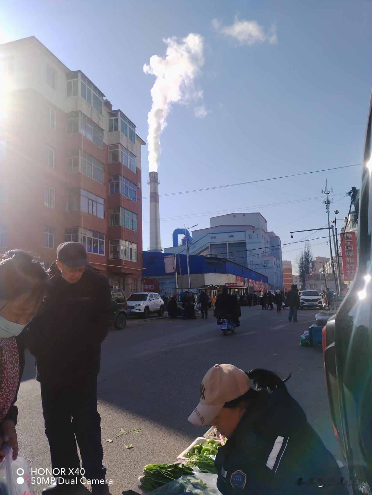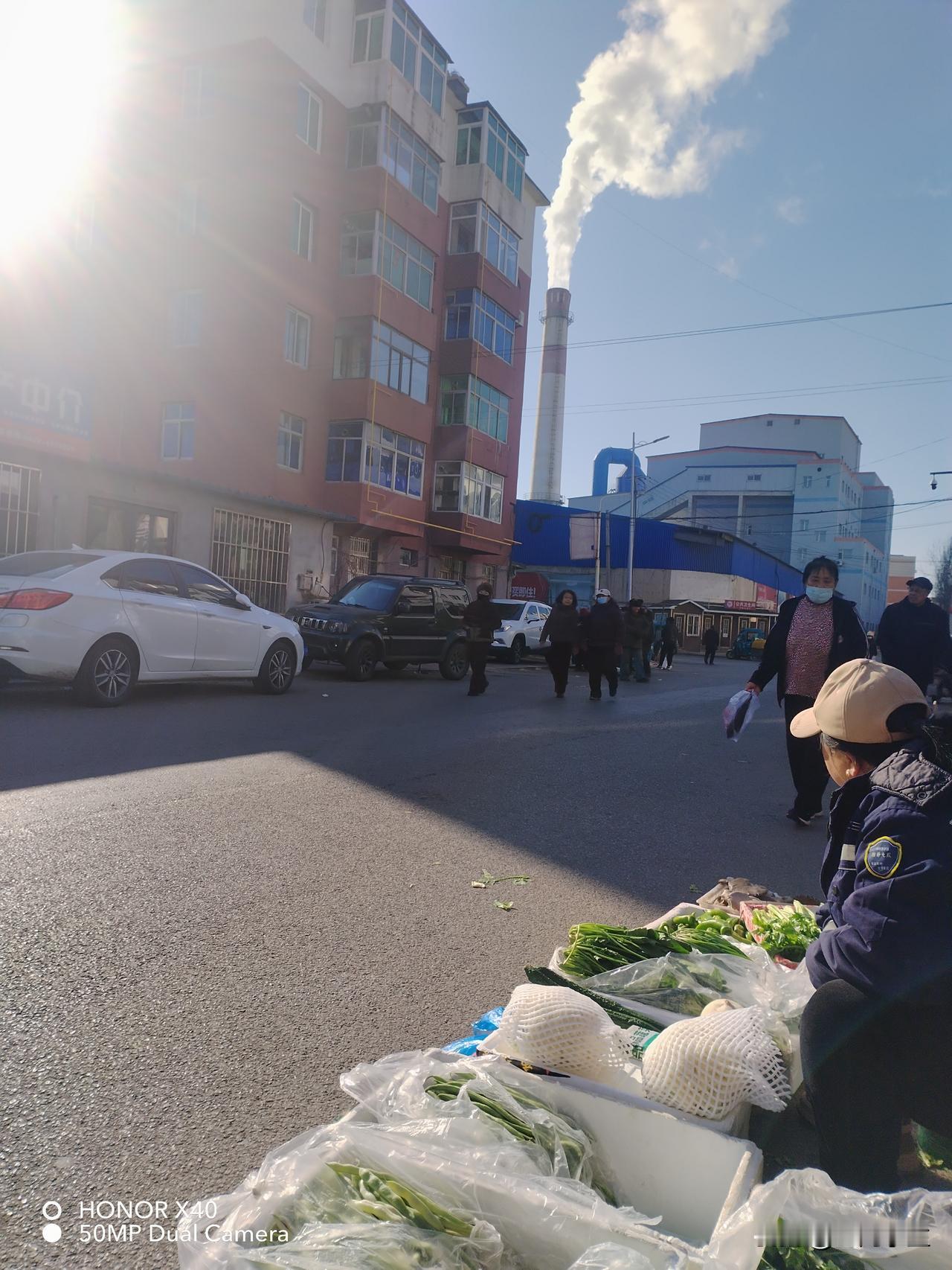 今天卖苹果去晚了,老公接我出发就不早,又搬了一会箱子,耽误时间了。到那一看都没地方了。就把苹果放到车后面了。那时候太阳正在头顶,感觉来晚了也不错,还挤到一块地方。 老公在我斜对面也摆一个摊,他那有点冷,他总来我这面唠嗑,市场上的人都该认全了。熟头巴脑的! 对面的供暖公司正在烧暖气,一抬头就看见了,每当太阳躲过房子也就没啥人了,那时候也就是12点左右。 我在卖菜的旁边卖苹果,左边有卖花梨的。连卖三天,都混个脸熟! 今天卖的不错,国光卖没了,大富士也卖完了。白梨,小富士都卖了些,不到一点就收摊,老公又回老家取货了,后来我自己步行回新楼。