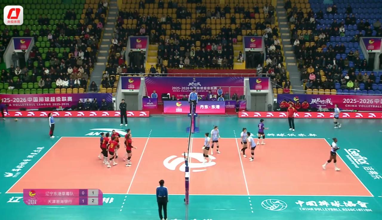【女排超级联赛】常规赛第六轮:辽宁——天津 实时战况: 1月3日晚19:00时,全国女排超级联赛第六轮辽宁——天津的比赛打响。第—局,6:11天津领先。7:11,7:12,8:12,8:13,天津领先。9:13,9:14,10:14,10:15,11:15,11:16,天津快攻。12:16,辽宁拦死刘美君扣球。12:17,12:18刘美君。13:19,14:19,14:20,14:21,辽宁暂停。15:21,15:22,天津发球出界16:22。17:22,辽宁发球得分,天津暂停。17:23,18:23,19:23,辽宁拦网。19:24天津快攻。20:24,21:24。21:25,天津胜第一局,大比分1:0,天津领先! 第二局比赛正在进行中……