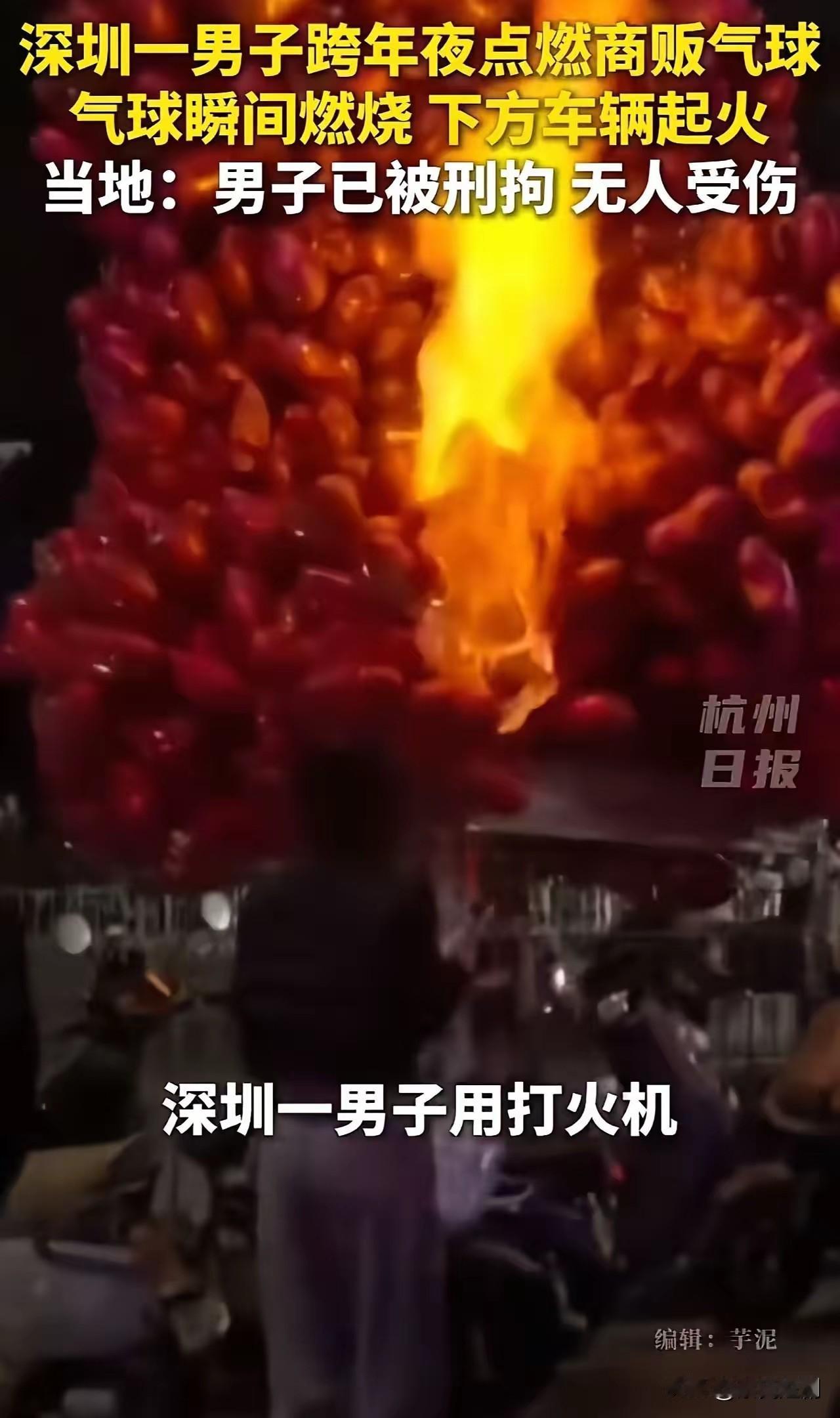 【标题:跨年夜的危险闹剧:深州男子点燃气球引发火灾,法律当严惩恶意纵火】 当新年