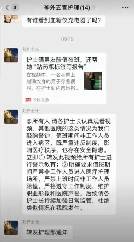 女护士让男友进配药室。正脸被扒与男友合影。两个人现在肯定后悔不已。男友可能是太爱她了,想给她多一点陪伴,护士值夜班,他就在配药室陪着,还帮女友干活。 干活累了就在配药室睡觉。 女友护士也没觉得什么不妥,记录下男友在配药室写报告,贴标签的照片,还发布到网上秀恩爱。 引发了网友评论,转发,也引发了一部分人的愤怒。