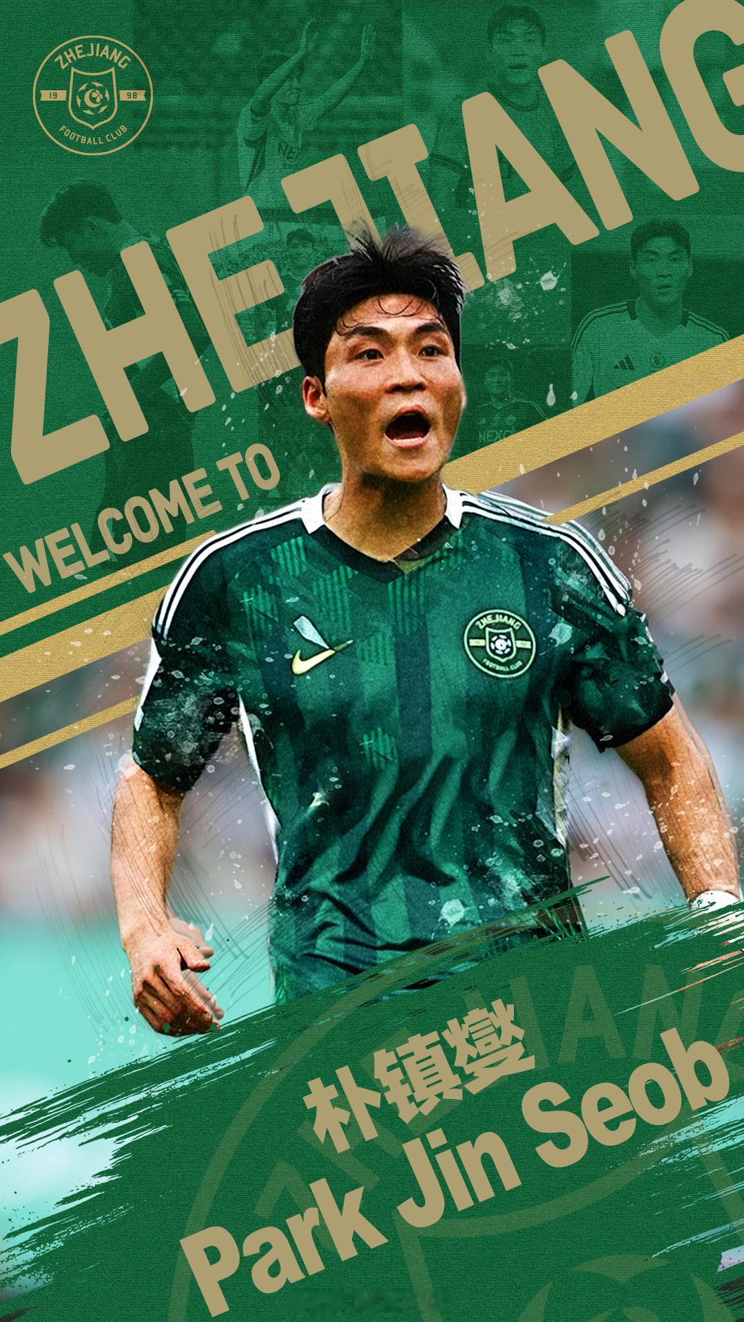 两边都官宣了。大器晚成的韩国国脚、全北队长,朴镇燮加盟浙江FC。中超
