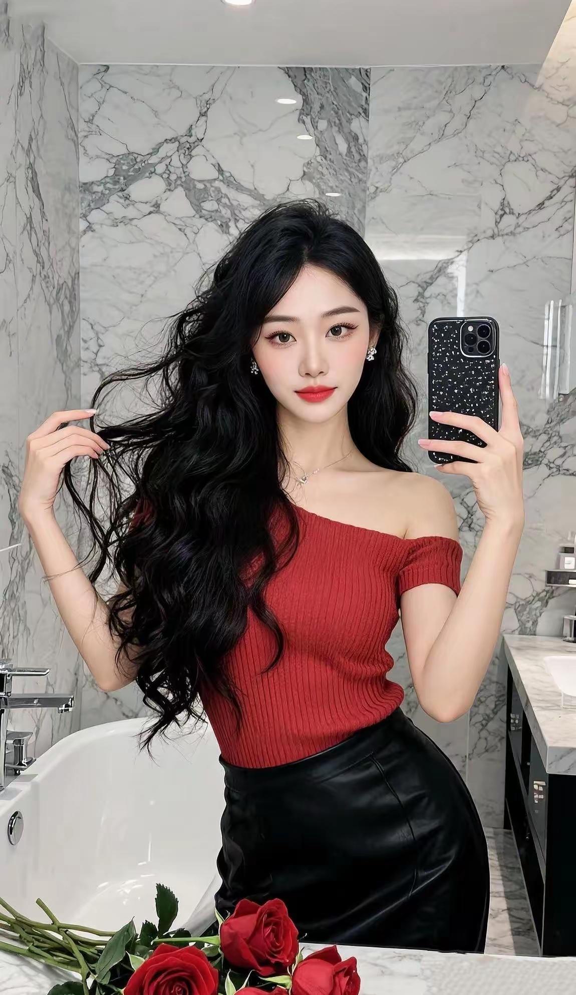 温柔眼波,红唇轻启,少女心事红妆美人,