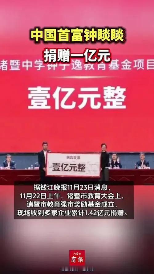 最近,首富钟睒睒为他祖父的母校——浙江的诸暨中学,捐款一个亿。这浓浓的祖孙情非常令人感动,这一捐款助学的壮举必须得大力弘扬!