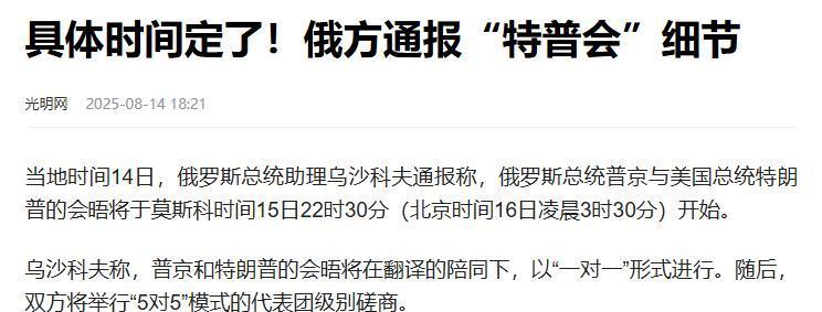普京飞去美国见特朗普,这趟行程,他带的人、谈的事,全都有分量。 阿拉斯加的寒风裹着雪粒打在埃尔门多夫-理查森联合军基地的玻璃幕墙上,零下22度的低温里,两个大国的领导人要在这里谈一场可能改变战局的对话。 选在北美防空司令部的关键节点,地下指挥中心的防核打击门缓缓关闭时,谁都清楚这场"冰原峰会"的分量远超普通外交会面。 俄方代表团的五个人站在停机坪上呼出白气,拉夫罗夫的貂皮帽檐结着霜花,这位执掌俄外交19年的"硬汉"身后,站着刚在白俄罗斯部署完战术核武器的防长别洛乌索夫。 有意思的是被美制裁的RDIF基金负责人德米特里耶夫也出现在队伍里,他公文包里装着的经济补偿方案,怕是要和乌东停火协议摆在一起谈。 特朗普在地下会议室里转了三圈,指着墙上的阿拉斯加地图对助手说这里离莫斯科比离华盛顿还近。 美方准备的三套方案里,最保守的是只谈战略武器数据交换,而普京团队提前放出的"暂停基辅导弹袭击"信号,已经让国际油价跌了3个点。 这种你来我往的试探,像极了1985年日内瓦峰会时里根和戈尔巴乔夫的拉锯。 乌克兰战场的地图摊开时,赫尔松地区的对峙红线特别刺眼。 日均五百人的伤亡数字被打印在浅色信纸上,俄方坚持"不讨论领土划分"的立场,美方则攥着远程导弹援助清单不肯松手。 我觉得这种僵局或许藏着转机,就像《华尔街日报》提到的,"冻结战线+交换战俘"的阶段性方案,可能成为双方各让一步的台阶。 《新削减战略武器条约》的到期倒计时牌挂在谈判桌对面,2026年的截止日期让"先锋"高超音速武器的归属问题变得紧迫。 美方想把它塞进限制清单,俄方却盯着欧洲的"陆基战斧"导弹不放。 这种围绕武器数据的较劲,本质是两个核大国在重新丈量安全边界。 会谈结束时,地下指挥中心的应急灯突然闪了一下。 普京整理大衣时,左手无名指的戒指蹭过桌面上的乌克兰地图,正好停在马里乌波尔的位置。 特朗普签字的钢笔没水了,助理递来的备用笔杆上刻着"2018赫尔辛基"的字样。 这场没有联合声明的峰会,或许就像那盏闪烁的应急灯,在僵持的战局里透出点继续对话的微光。
