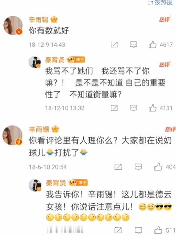 辛雨锡秦霄贤他们两个又怎么了?居然能从2018闹到2026还没闹完。八年的纠葛扯来扯去,从恋爱撕到官司,什么时候是个头。