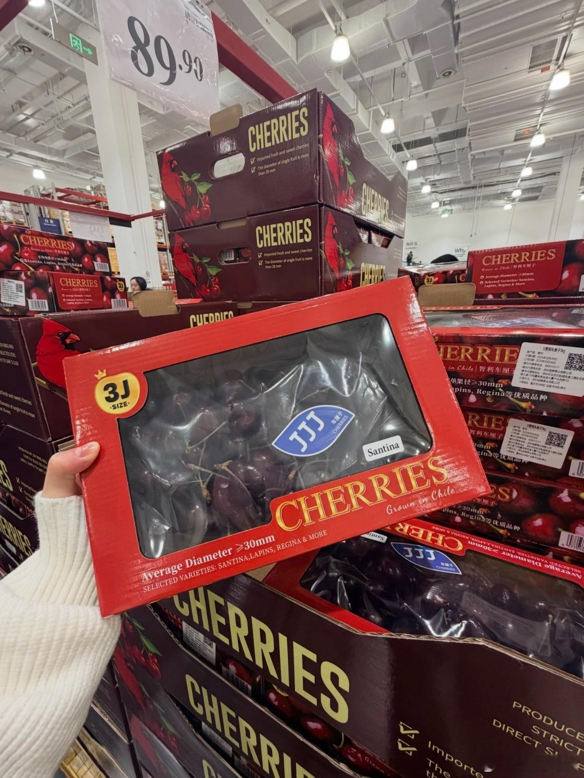 山姆89.9车厘子值不值得入手?智利3J的车厘子1kg,现在是89.9对比了盒马的是3J ,450g ,49.9山姆好像更便宜些但是摸起来有点软软的,拿一盒尝尝,大家都在开盒子摸摸看 表面皮有坑洼皱皱的