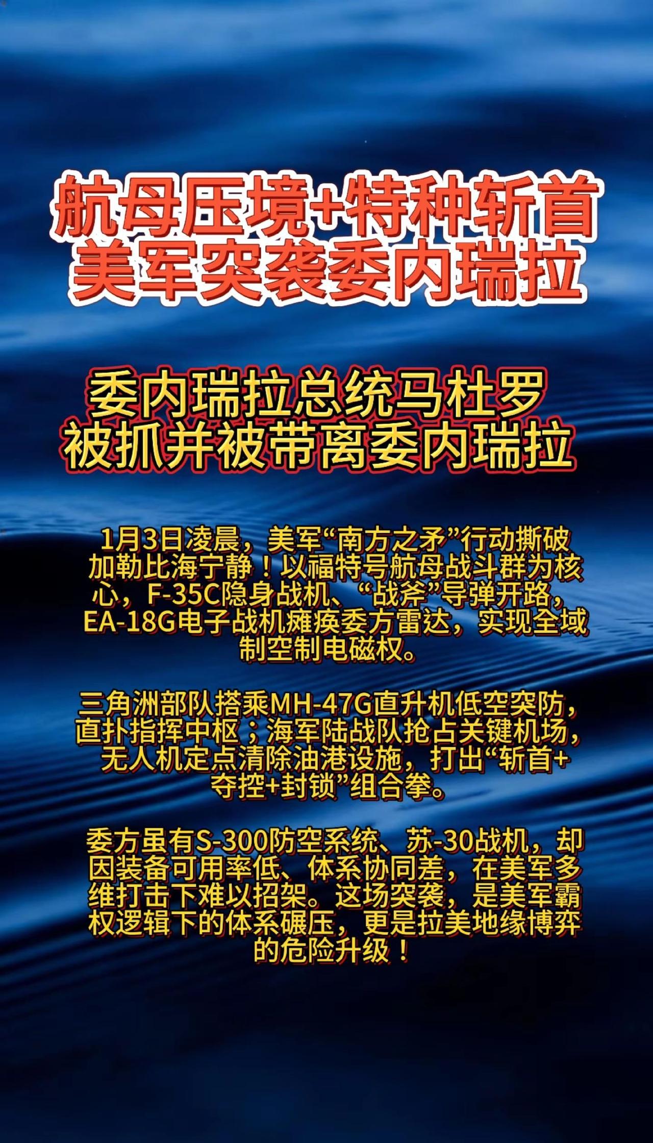 美突袭委内瑞拉,总统被抓?军事热点 国际局势分析