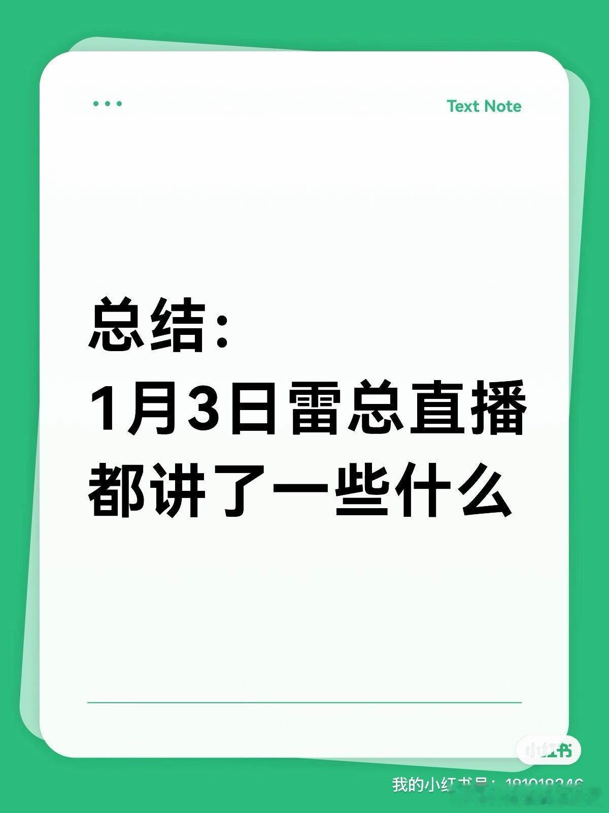 1月3日雷总新年直播总结:1️⃣直播用了3个小时拆解了一整台小米YU7标准版,详细讲解了设计逻辑和扎实的整车部件,展示了从机盖到电池包,到气囊等一些安全关键零部件,软+硬的各类零碎部件也给大家做了一一介绍,特别邀请高管团队崔副总裁在线讲解,我这机械门外汉都看的津津有味~‼️有个小爆料(小米汽车2026年将启用2400mpa超强钢!就在友商还在奋力追赶2200mpa的时候,小米汽车又上强度了!)2️⃣小米公关部总经理徐洁云就2025年小米所遭受所有抹黑进行了回复:1300公里一次充电?7000人法务?小米不让卖小米?200公里瞬间刹停?小字虚假宣传?‼️这一次小米正式公开宣战,也呼吁所有的小米车主坚决反对所有抹黑和污蔑,小米也加大力度全平台支持大家投诉甚至发起诉讼,且每个月都会公布相关进度!2026年小米也会对突发事件多多回应~3️⃣雷总公布数据先是重复了一遍1.1的新政策,而后公布:‼️2025年小米汽车交付41万辆!‼️2026年交付目标55万辆!顾名思义,这是一个非常保守的数字,按照正常浮动,且在多车型和工厂扩建的加持下,月均交付50000辆会是常态,2026年小米必将又是里程碑的一年!此次直播并没有爆料太多新的信息,没有新车,没有新色,没有新配置,再给小米一点时间充分准备吧~徐同学助手小米汽车雷军
