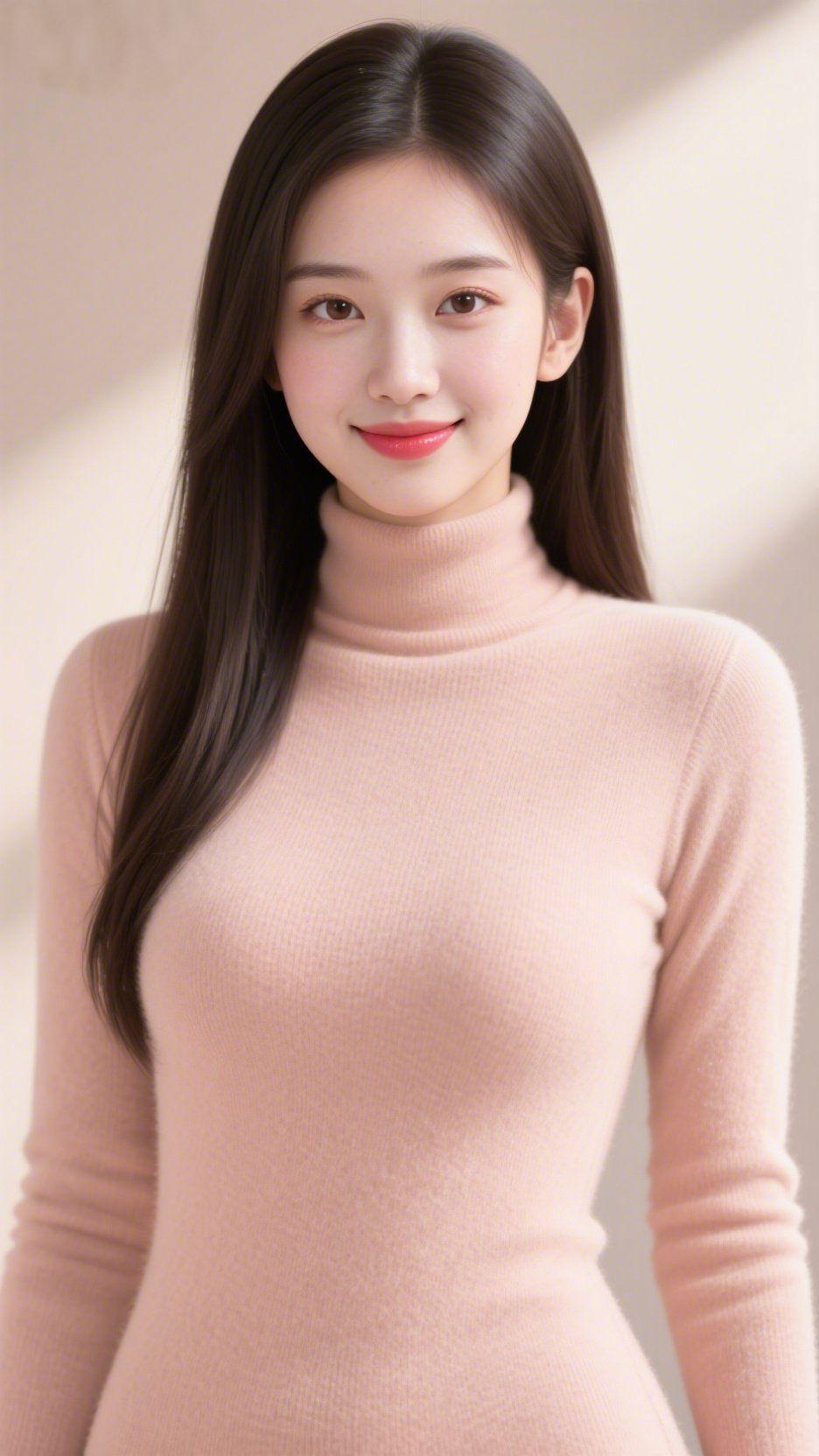 《暖粉针织的轻柔日常》 淡暖的粉融在针织纹路里,像把春日软云揉进了衣料。高领妥帖的弧度,衬得长发垂落时,连周遭光影都浸着轻缓的温。 她立在浅调背景中,唇间明丽恰好,像晨光落在软杏上的鲜活——这不是刻意装扮,是日常里随手裹起的舒展:是针织贴肩的暖,是发丝掠耳的轻,是目光相触时,空气里漫开的松弛笑意。 最动人的日常从不是繁复修饰,是这样带温度的素净,让平凡时刻裹着细碎柔意,像晚风轻拂窗纱的软。 暖调穿搭灵感 日常松弛美学