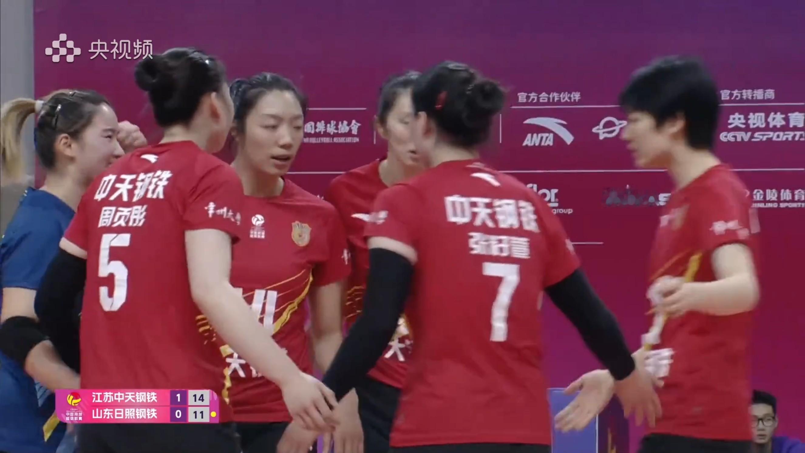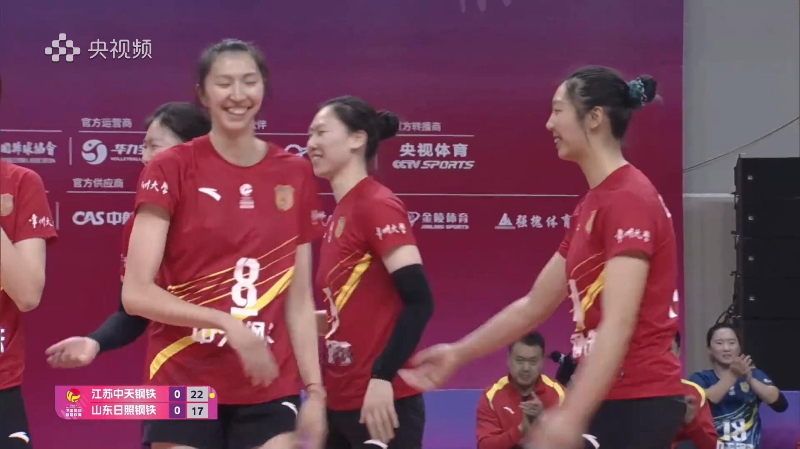 中国女排超级联赛排超联赛A常规赛昨晚迎来一场重头戏,大湾区全运会冠亚军,江苏中天钢铁女排和山东日照钢铁女排狭路相逢。表面上,全运会冠亚军之间的交手好像应该会很激烈,可事实上,坐阵主场的江苏女排却是全方位的碾压!整个比赛过程毫无悬念,江苏队直下三局,以3比0横扫山东队。这场比赛开局,江苏队就占据优势,虽然第一局开局时双方比分咬得很紧,多次打平,但很快,江苏队就掌控了局面,尽管山东队数度追近比分,但没有任何机会,江苏队25比21拿下第一局。第二局,江苏队一路领先,以25比14大比分赢球。第三局的情况与第一局类似,江苏队控制着比赛节奏,山东队拼命追分,一度追到20,但最终,江苏队还是以25比20赢得了全场胜利!这场球,江苏队从主攻线,副攻线,网口,防守端到二传和一传都全面开花。吴梦洁,唐欣,张籽萱等都发挥非常出色。今晚19点,江苏女排将与四川女排交手,赢球没有问题。图源:央视频直播截屏
