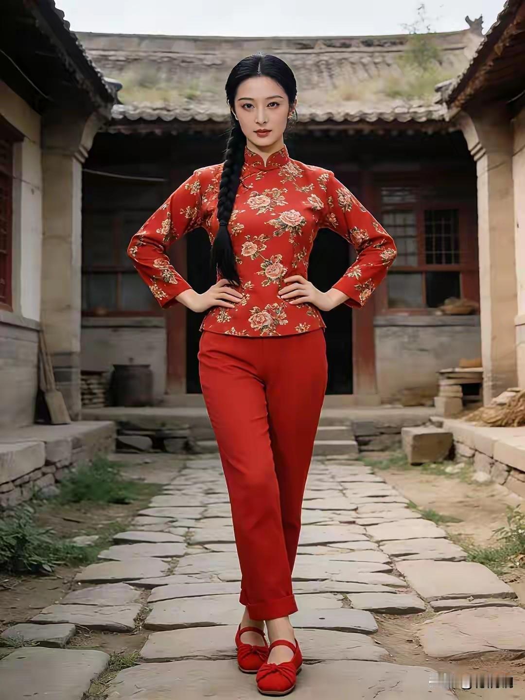 嫣然一笑百媚生, 连步轻移柳韵盈。 美色佳人,站在村庄 红袖翩跹,点衬霓裳 乌发垂云,音簪素玉 锦襟绣簇,光映韶华 樱桃小口,柳眉星眼 花容月貌,婀娜多姿