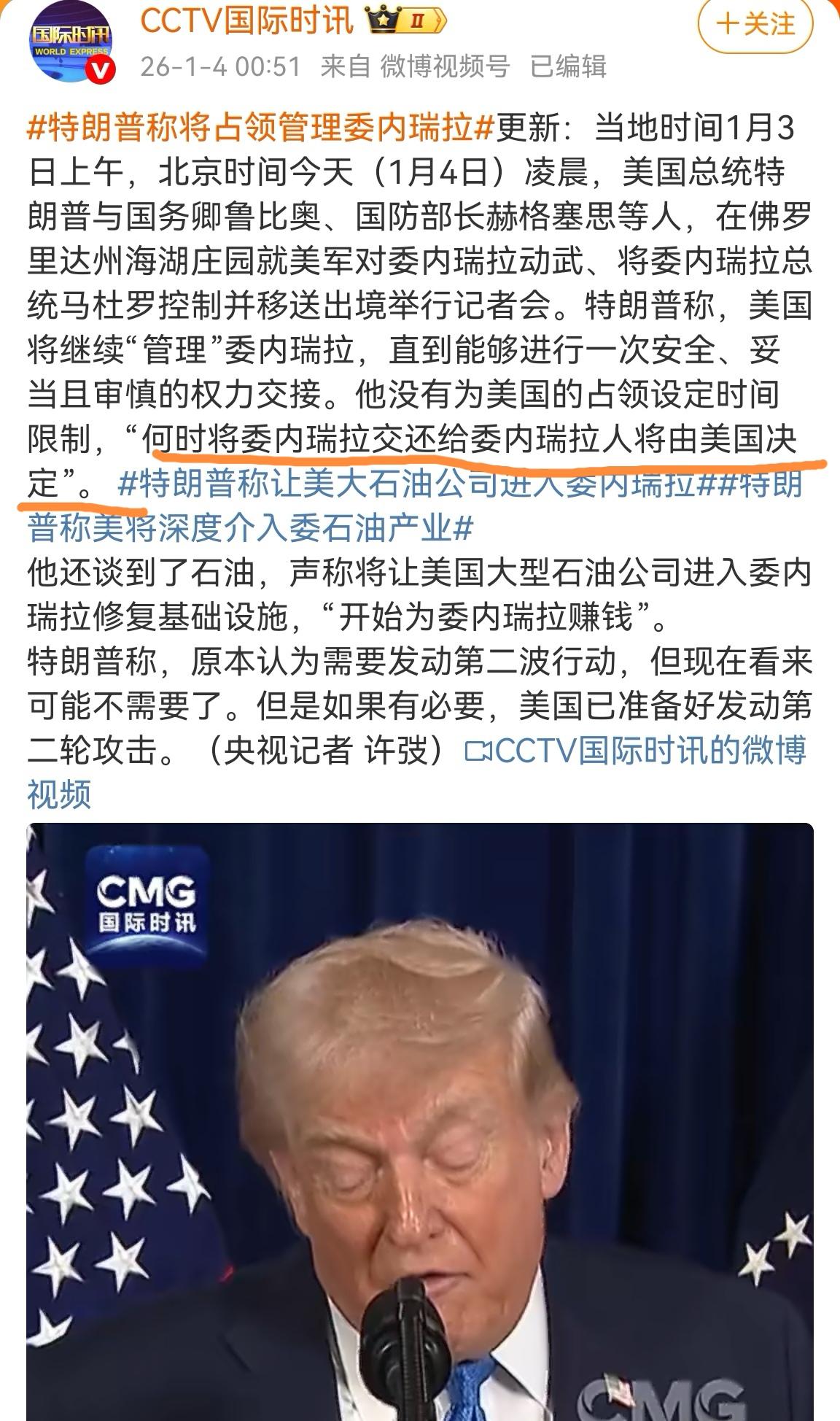 一个美国总统直接宣布:美国的石油公司将接管委内瑞拉的石油产业,美国来“管理”委内瑞拉这个国家,至于何时把这些还给委内瑞拉人民将由美国说了算。 太逆天了,这无耻的操作是号称文明国家灯塔能干的事吗? 这已经不是小型主权国家还有没有尊严的问题了,这直接让人想起了一个一百多年前的专有名词—殖民主义剥削。 果然在他们所谓文明的伪装之下,是一头血淋淋的巨兽。
