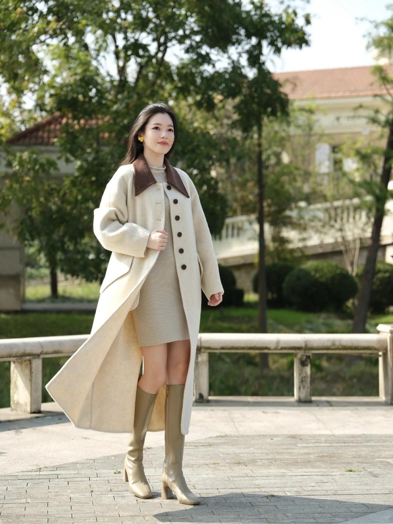 张柏芝的驼色大衣穿搭,美到发光!46岁的她,用一件驼色大衣,搭配牛仔裤和长