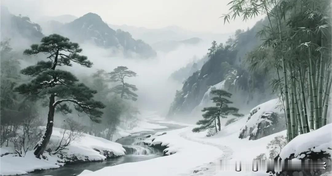 看到“雪落千山静”,我脑海里立马浮现出两个下联。一个是“春到万木苏”,当雪花飘落,千山万壑都安静下来,世界静谧又纯净,仿佛所有喧嚣都被隔绝。可等春天一到,树木发芽、花朵绽放,万木复苏,生机勃勃。这种从寂静到活力的转变,是大自然神奇的魅力。 另一个是“水清一鉴明”,雪落让山安静,而清澈的水就像一面明亮的镜子,能清晰映照万物,给人一种澄澈、安宁之感。不得不说,古人对文字的运用太精妙了,短短十字就勾勒出绝美画面。