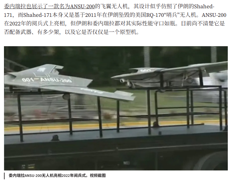 根据2022年和2023年的报道,中国几乎已经停止了对委内瑞拉的军事支持(虽然仍有通过民间企业渠道进行的零星往来),由于缺乏备品备件,早在数年前,委内瑞拉超过 50% 的 JYL-1 和 JY-11B 雷达处于停用状态。截至去年,俄制防空系统的状况同样令人绝望——S-300 已经连续 18 个月未曾运作,而“山毛榉”(Buk)系统也仅剩 1 部雷达仍在勉强工作。苏-30MK2 战斗机的作战运用受到严重限制。目前只有少数 F-16 战斗机仍保持可用状态,而 AT-27 则仅用于飞行训练。K-8W“喀喇昆仑”教练/轻型攻击机机队的出勤率不足 30%,且不具备空对空雷达,在实战中的作用非常有限,更多只是象征性地用于反毒品任务。自 2020 年以来,伊朗开始扮演更加积极的角色,向其提供了:“迁徙者-6”(Mohajer-6)无人机电子战技术人员空中侦察与监视系统然而,伊朗的介入仅仅加强了政权在加拉加斯和拉奥尔奇拉岛(La Orchila)的防御圈,并未恢复国家整体防空与国防体系的功能性。整体而言,空中防卫与航空兵覆盖范围极其有限,主要集中在加拉加斯和拉奥尔奇拉岛,这些地区直接处于政治最高指挥层的保护之下。委美冲突武器装备解读委美冲突