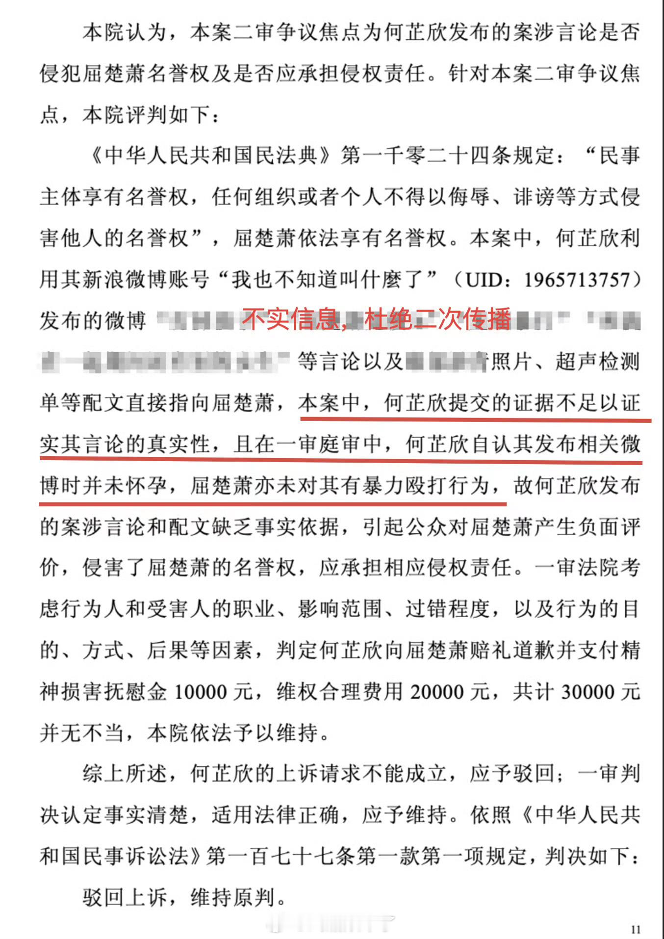 屈楚萧方公开胜诉判决书屈楚萧 方公开二审胜诉判决书,判决书明确写明:何女士于庭审中承认自己发布相关微博时并未怀孕,屈楚萧先生亦未对其有暴力殴打行为。屈楚萧方因为对方是素人所以一直没有公开判决书,这次是真忍不了了啊,当年根本没有家暴,也算WWZZ了。 粉丝总算能挺直腰杆了。