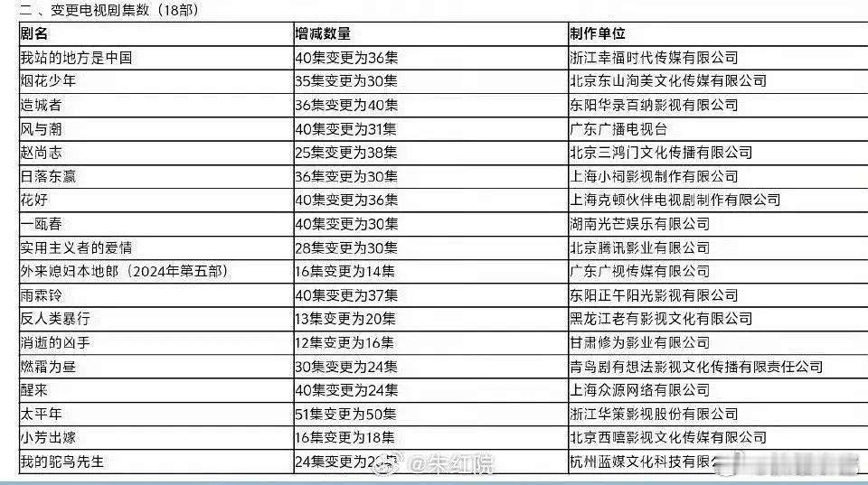 许凯、周也《一瓯春》40集变更为30集 杨洋《雨霖铃》40集变更为37集田嘉瑞《燃霜为昼》30集变更为20集