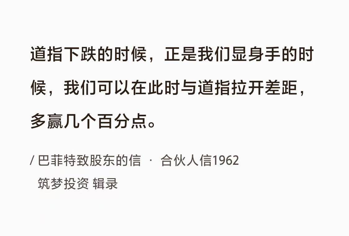 巴菲特曰:“道指下跌的时候,正是我们显身手的时候,我们可以在此时与道指拉开差距,多赢几个百分点。”