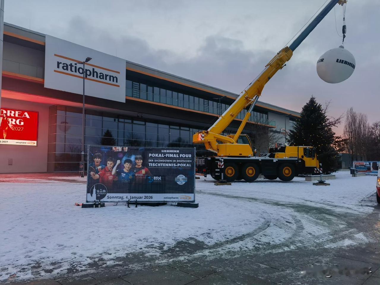 奥克森豪森剑指爆冷,户上:我们很清楚萨尔是夺冠热门,但乒乓球的魅力就在于,一天里局势可能发生翻天覆地的变化。保持冷静,坚信赛前备战成果,团结一致,做到这些,我们就有机会上演爆冷好戏。 但是,我坚信,有樊振在,萨尔布吕肯的两分稳了,所以萨尔布吕肯肯定是夺冠概率最大的队伍! 比赛场馆外一切布置完毕,吊车吊起的大大的乒乓球正式宣告:德国杯比赛一触即发! 樊振东加油!萨尔布吕肯队 加油!
