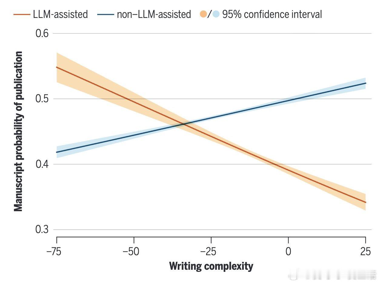 【当AI开始替科学家写论文,学术界正在经历一场静默的范式转移】Science杂志最新发表的一项研究揭示了一个令人深思的现象:AI辅助写作正在深刻改变科学论文的生产方式。研究发现三个关键趋势:一、大语言模型显著加速了科研产出。这一点或许不令人意外,但其规模和速度超出预期。二、非英语母语研究者获益尤为明显。语言壁垒曾是学术发表的隐形门槛,如今这道门槛正在被AI夷平。三、最耐人寻味的发现:写作复杂度与论文可发表性之间的相关性发生了彻底逆转。这第三点值得深思。过去,复杂精致的学术写作往往是高质量研究的标志;如今,当语言摩擦消失,写作复杂度不再是质量的代理指标。选择标准正从形式转向内容本身。这究竟是好事还是坏事?乐观者认为,这是学术民主化的进步——让思想本身而非语言包装成为评判标准。但担忧同样真实:当前AI写作的信息密度普遍偏低,表达精确度存疑。如果研究者不只是借助AI润色语言,而是将思考本身也外包出去,长期影响难以预料。一位评论者的比喻颇为尖锐:"一滴污水进入饮用水。"或许论文的结构本身也需要重新设计——只报告方法和结果,让读者借助AI生成个性化的引言和讨论。毕竟,这两部分恰恰是传统论文中最容易注水的地方。无论如何,这场变革已经发生。问题不再是"是否接受",而是"如何适应"。x.com/mathoncbro/status/2007504009532473611
