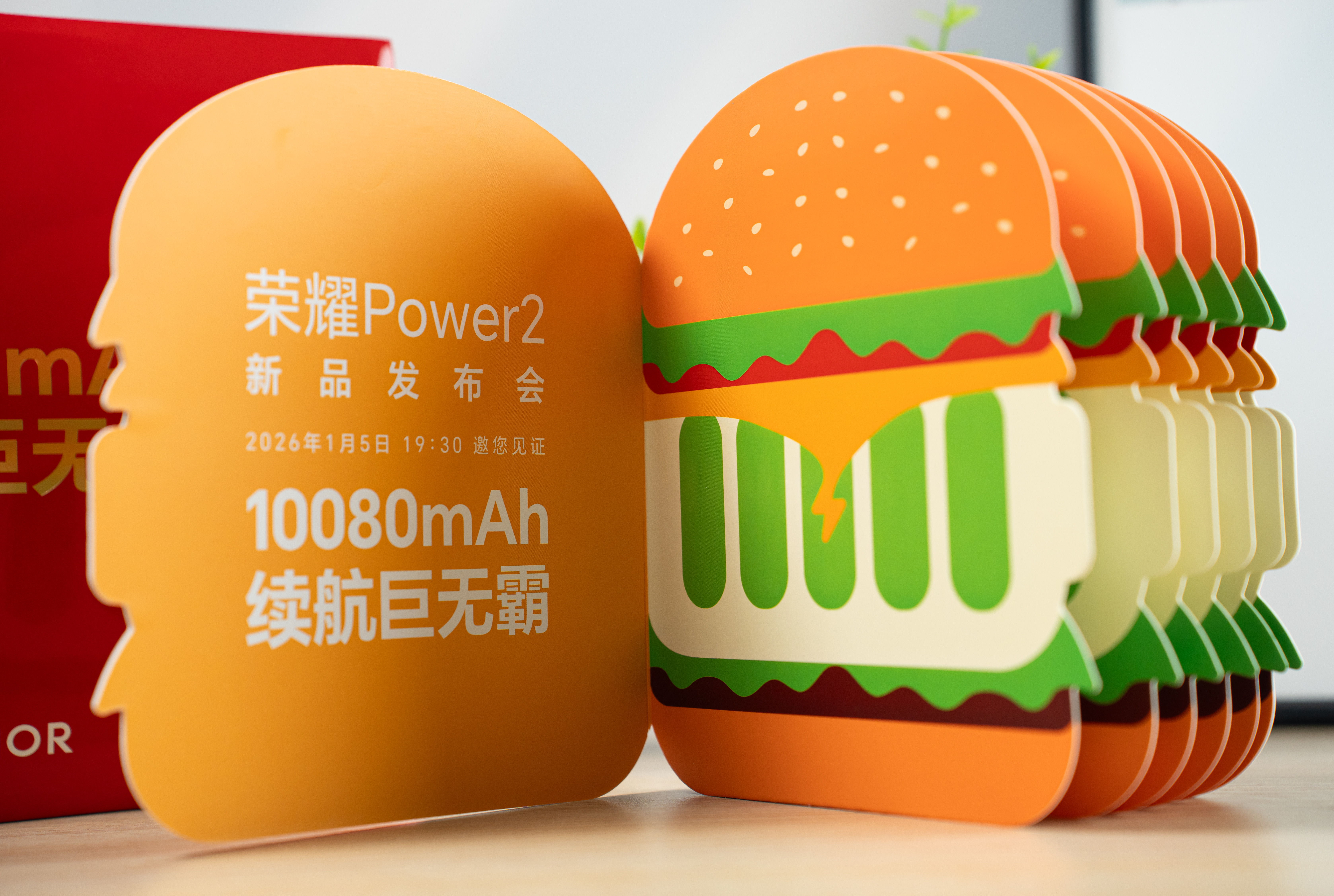 荣耀Power2发布会邀请函,是一个“巨无霸汉堡”~和手机的10080mAh电池相呼应,「续航巨无霸」量大管饱,真的蛮有意思~期待荣耀第二款破万电池手机,明天1月5号,不见不散! 对了,今天不吃汉堡王了,吃麦当劳