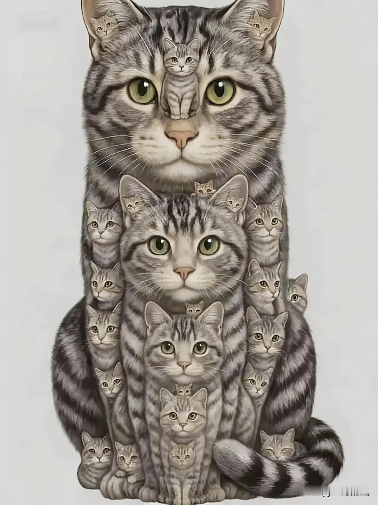 当你觉得日子寡淡如水、百无聊赖之时,不如来挑战数这张图里有多少只猫。 本以为是轻松小游戏,结果数到眼睛发直、脑子打结,就像对着芝麻粒数米。你看这猫塔层层叠叠,大猫小猫猫中猫,跟人生里的难题似的,看似简单实则弯弯绕绕。数到一半忘了数儿,像极了努力半天却跑偏的人生;好不容易数清几只,转眼又冒出新的猫脑袋,恰如生活里突然冒出来的小意外。 但你瞧这些猫挤成一团却泰然自若,其实人生就跟数猫一样,不必事事较真,糊涂点反而乐呵,毕竟你永远不知道下一个转角,会撞见哪只“意外之猫”。 你数出来了吗,图中一共多少只猫?