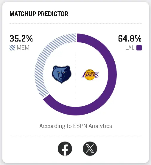 明日再战灰熊,ESPN给出湖人胜率高达64.8%!灰熊vs湖人洛杉矶湖人