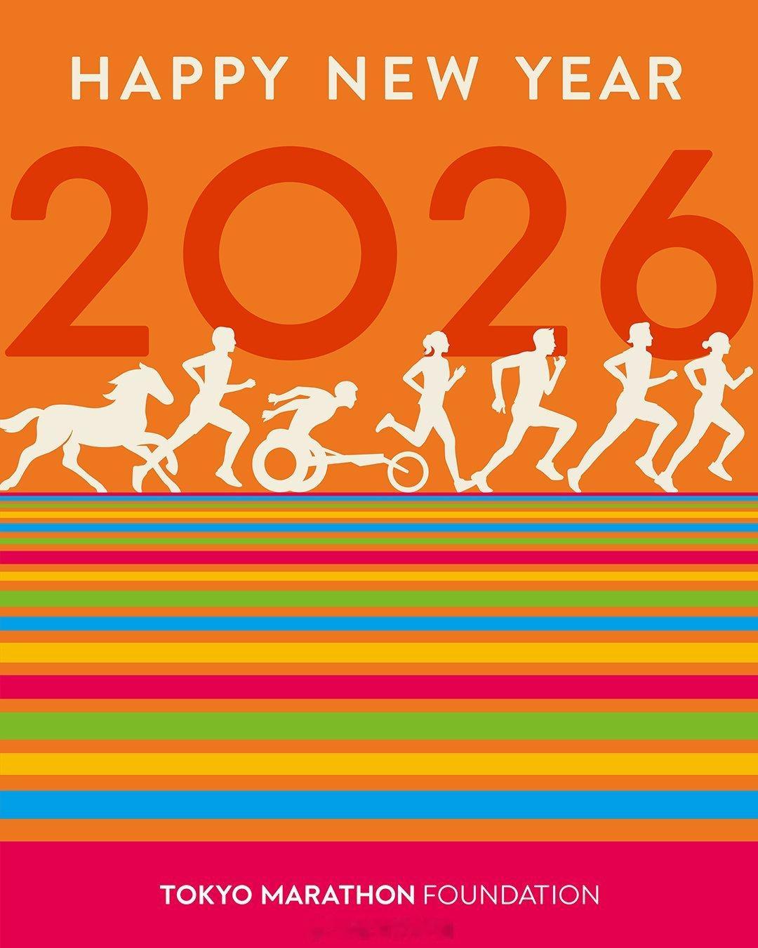 部分国内外跑步相关机构的2026年新年贺年平面海报AKIV、美津浓 Mizuno、彪马 Puma、首尔马拉松、东京马拉松、大埃跑、悉尼马拉松、世界田径诚信委员会 AIU、IChallenge、巴拿马体协、意大利田协、中国田协。马拉松 跑鞋 赛事组织