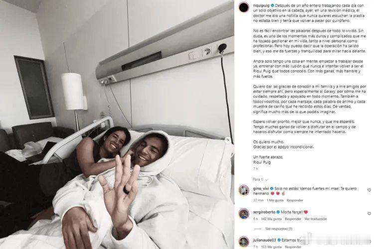前巴塞罗那中场球员、现效力于美国职业足球大联盟洛杉矶银河队的明星球员里基-普吉于本周六再次接受手术,以修复他于2024年12月遭遇的十字韧带撕裂伤势。 洛杉矶银河队官方宣布,普吉将缺席至2027赛季。他成功接受了左膝前十字韧带重建手术,距离他上次接受同样的手术仅一年多。 由于这次严重的伤病,这位中场球员错过了整个上赛季的MLS比赛,并且也将缺席2026赛季。 银河队表示:“普吉有望完全康复,并准备好在2027赛季开始时重返球队。” 里基-普吉是在2024年12月银河队对阵西雅图海湾人队的比赛中,在一次非接触性动作中受伤的。尽管遭遇挫折,这位西班牙球员仍然带伤坚持踢了半个小时。 他还送出了一次助攻,帮助银河队打进了当年的决赛,并最终战胜了纽约红牛队夺得了冠军。 普吉本人也毫不掩饰对职业生涯最新挫折的失望之情。他在社交媒体上发文表达了这一感受: 整整一年,我每天都朝着同一个目标努力,然而昨天在体检时,医生却告诉我一个我永远都不想听到的消息:整形手术失败了,我不得不再次接受手术。 经历了这一切之后,我真的很难用语言来表达我的感受。毫无疑问,这是我人生中最艰难、最复杂的时刻之一,无论从个人层面还是职业生涯层面来说都是如此。但今天我可以告诉大家,手术很成功,这让我有力量和勇气去展望未来。 现在我脑子里只有一个念头:立刻投入训练,比以往任何时候都更加充满热情地投入训练,努力重新成为你们熟悉的那个普吉。带着更强烈的渴望、更旺盛的斗志和更强大的力量。 我衷心感谢我的家人和朋友们一直以来的陪伴,尤其要感谢银河队,感谢她一直以来对我的关心、尊重和支持。也感谢大家,感谢你们这几天发来的每一条信息、每一句鼓励的话语和每一份关爱。你们的关心和祝福对我来说意义非凡。 我希望很快就能以更好的状态回归,也希望你们能等我。我非常期待再次回到乡间享受生活,也希望你们能像我一直以来努力做的那样,感受到乡村的美好。 我非常爱你们。 感谢你们无条件的支持。 一个大大的拥抱。 里基-普吉
