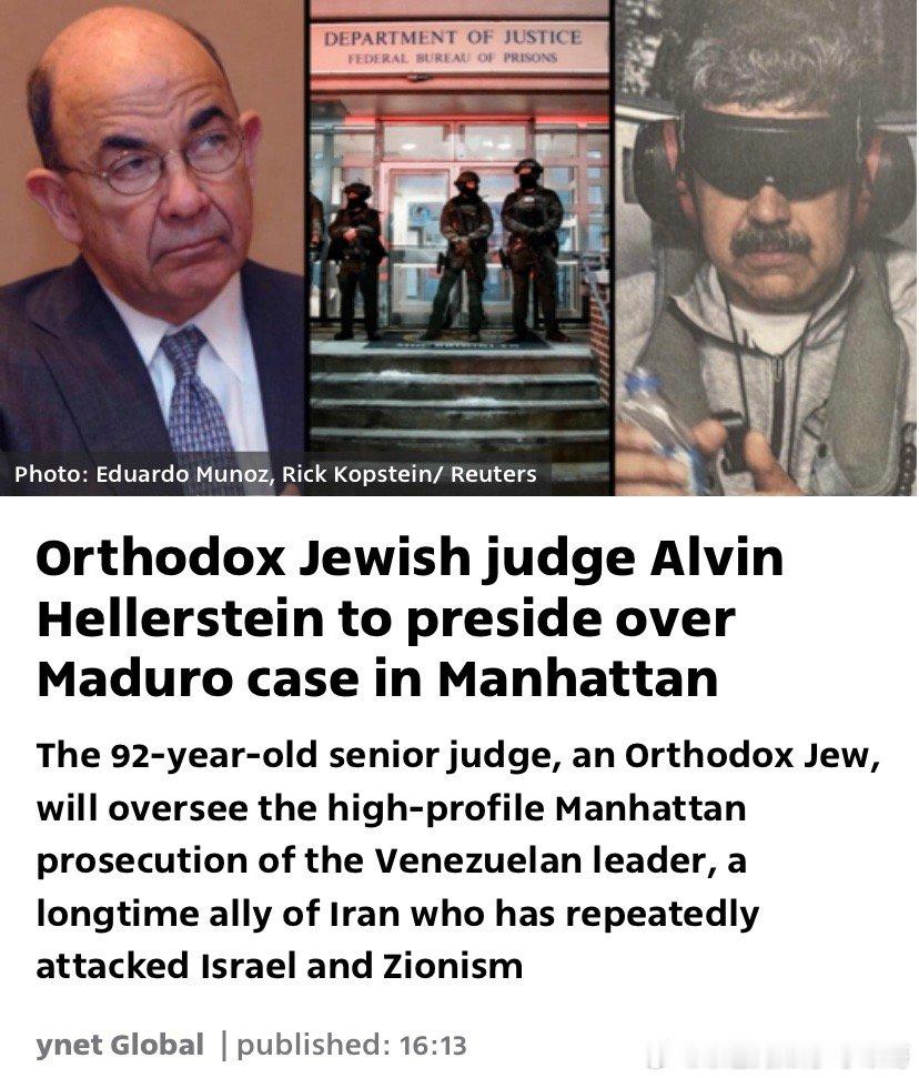 犹太法官审判马杜罗在纽约审理马杜罗的是一名92岁超正统派犹太人法官,以遵守犹太律法而闻名,同时保持了严格的司法独立和遵守司法程序的声誉。马杜罗是伊朗的长期盟友,总是攻击以色列和犹太复国主义。预计此案会对地区局势有重大影响。外交部回应美强行控制委总统夫妇海外新鲜事
