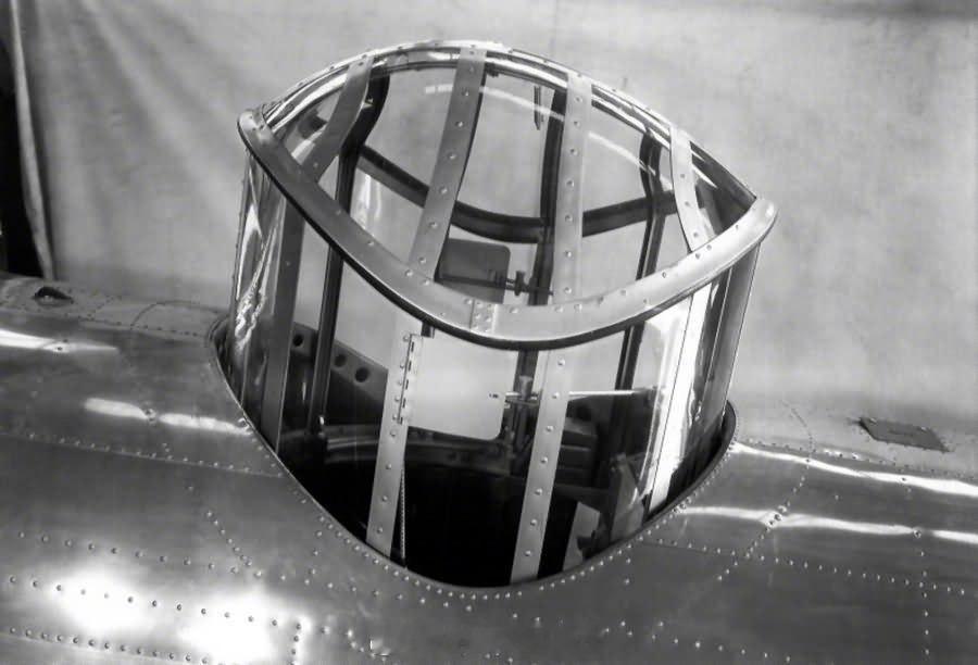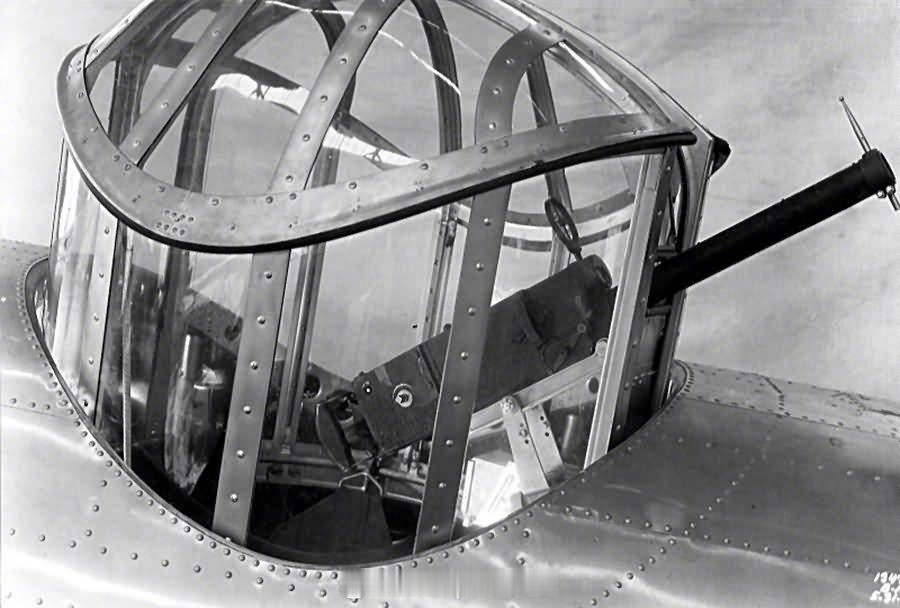 照片中的历史 美国道格拉斯 B-18“博洛”轰炸机上可伸缩的顶部炮塔。