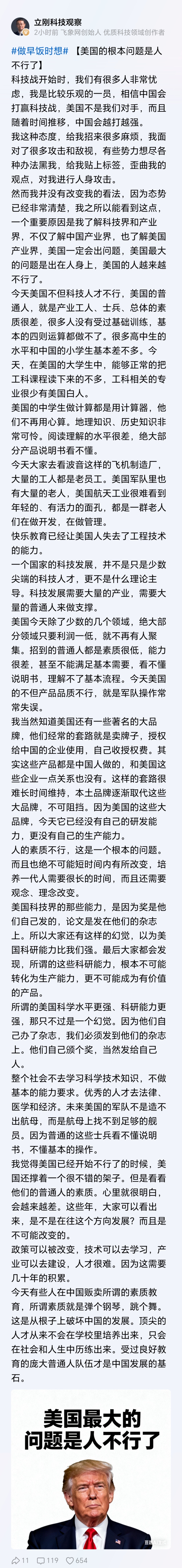 写得真好!一个国家的硬实力,不光看顶尖科学家,更要看普通人的基本素质。