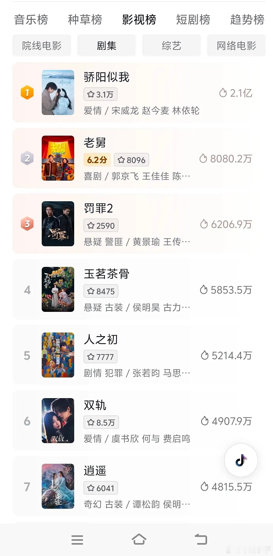 这个罚罪的沉默市场是真挺奇怪吧,你要说相对下沉,抖音红薯微博没剧粉讨论那行,不至于夸克百指微指全都拉得一批垫底。以前有沉默市场表现的剧是这样的?老舅完结百指也有十万。