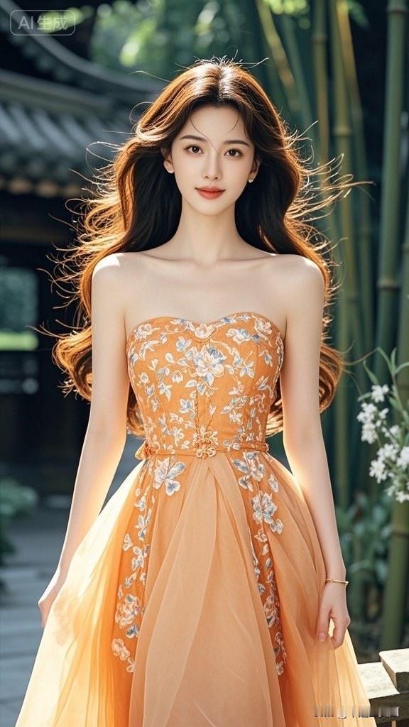 夏日清凉,竹林中的仙气少女