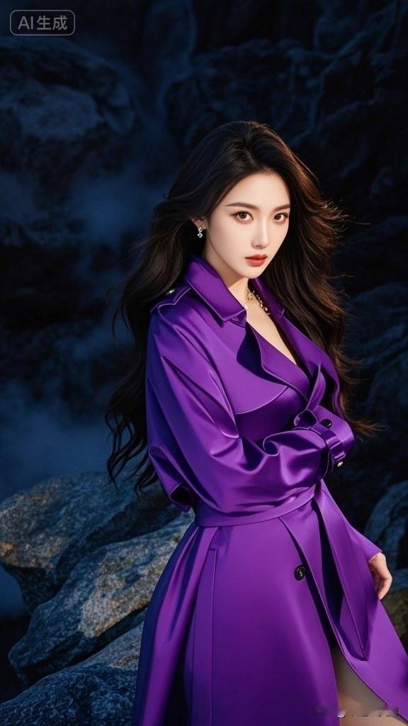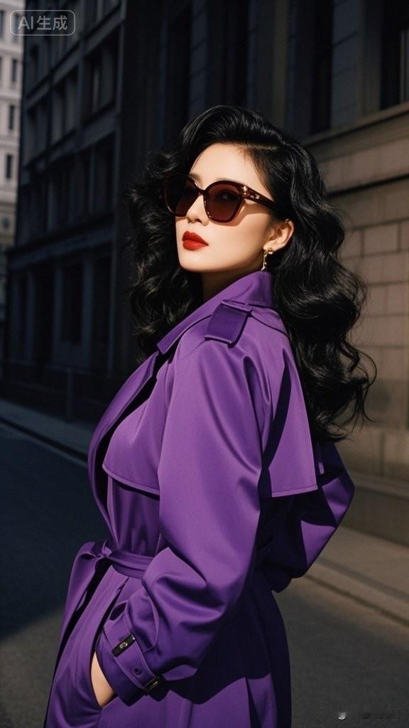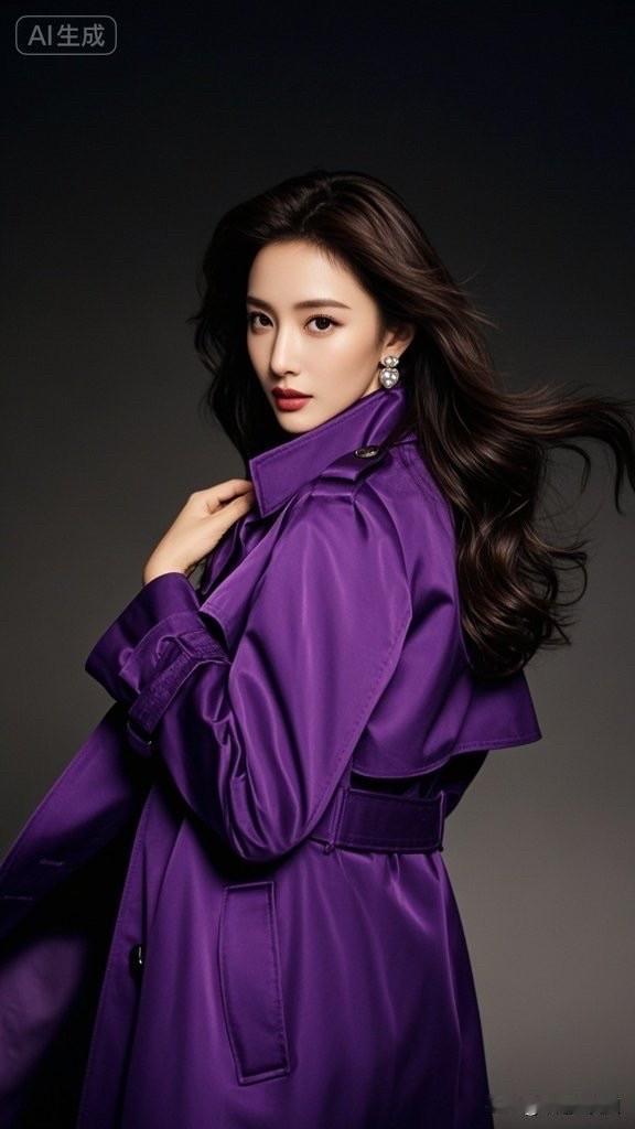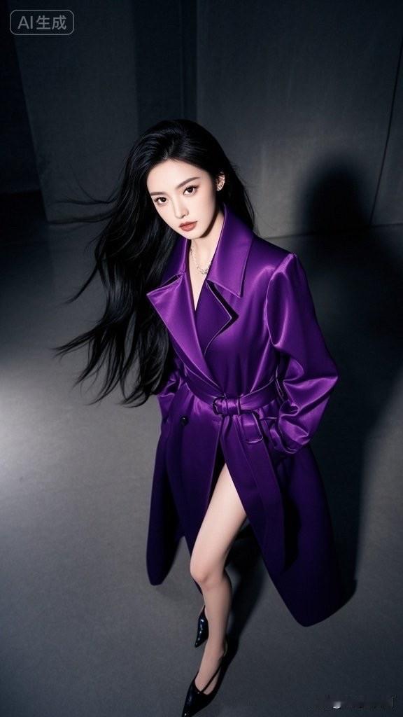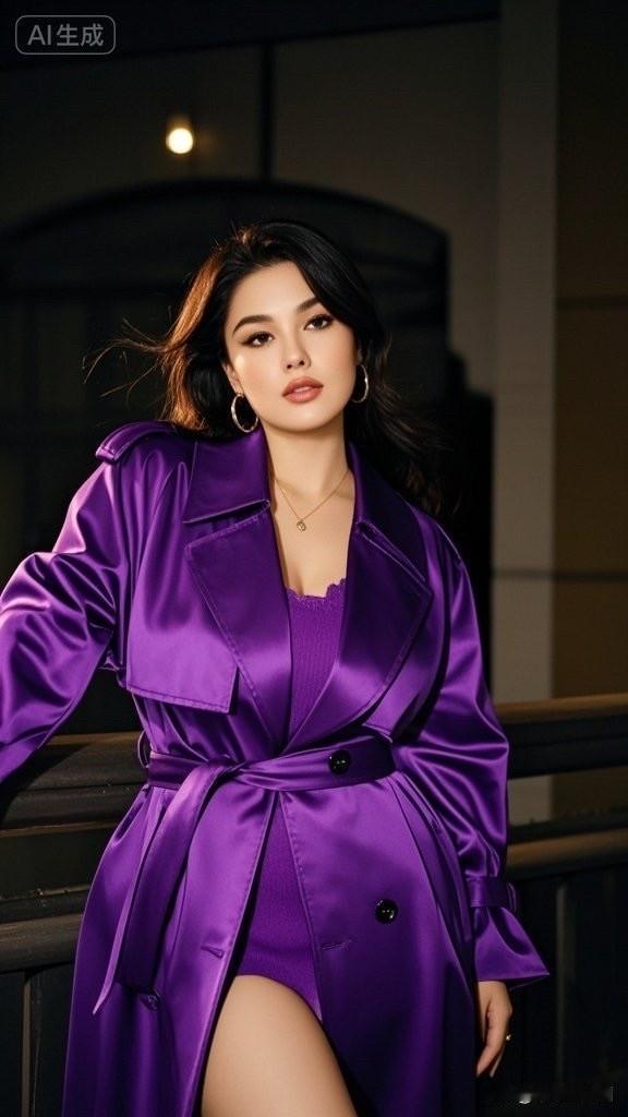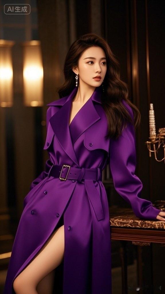 紫色风衣,优雅气质,时尚大片