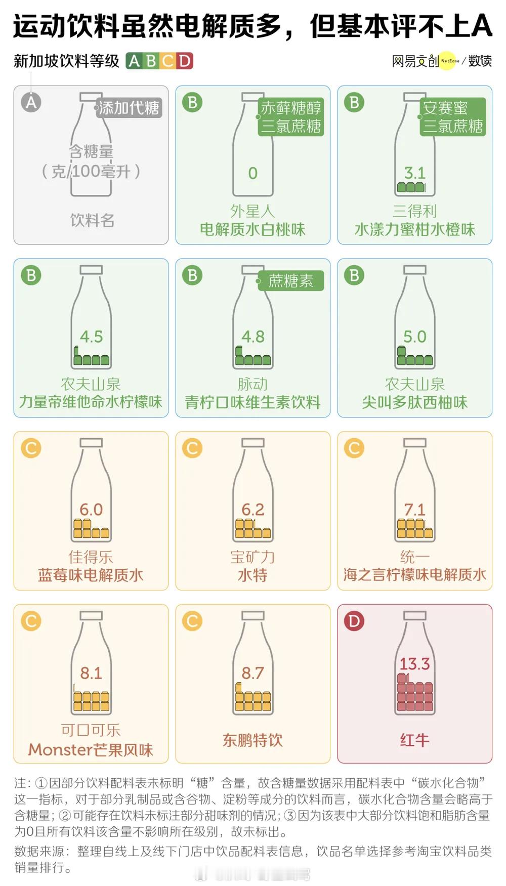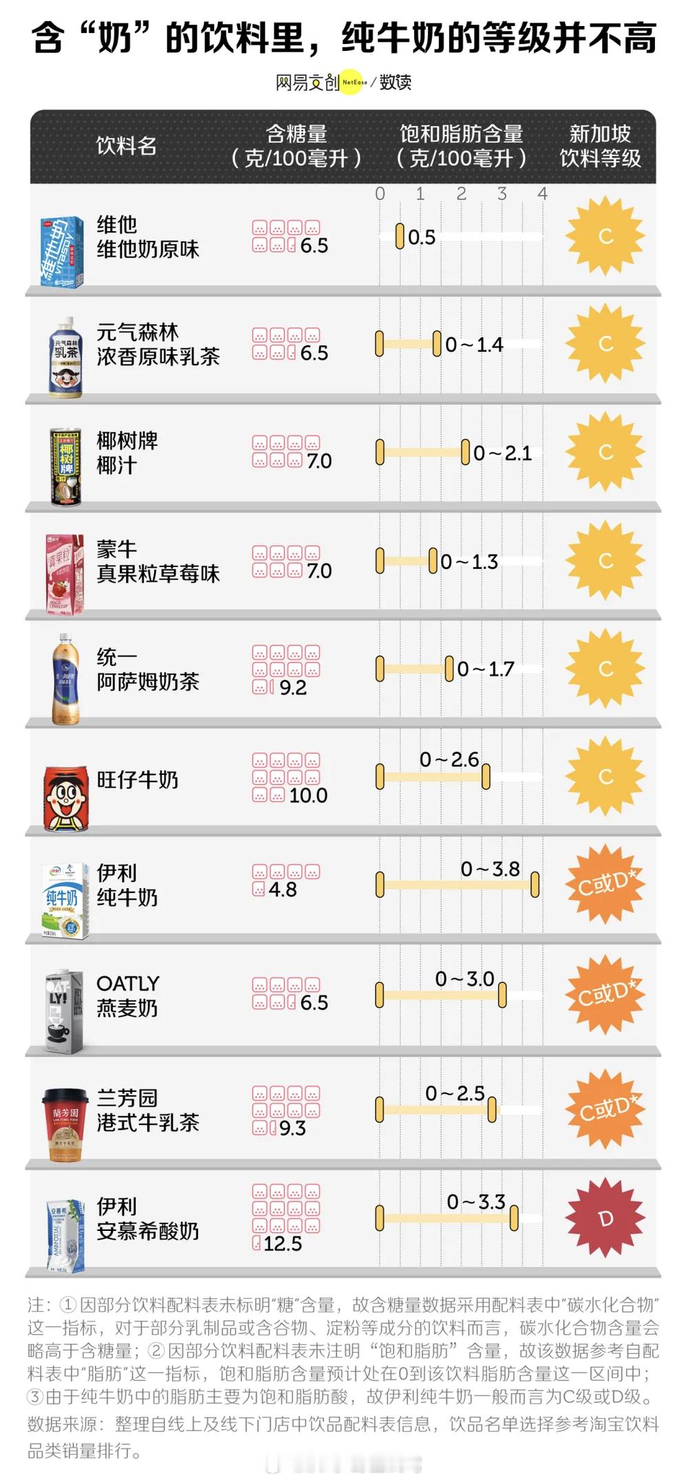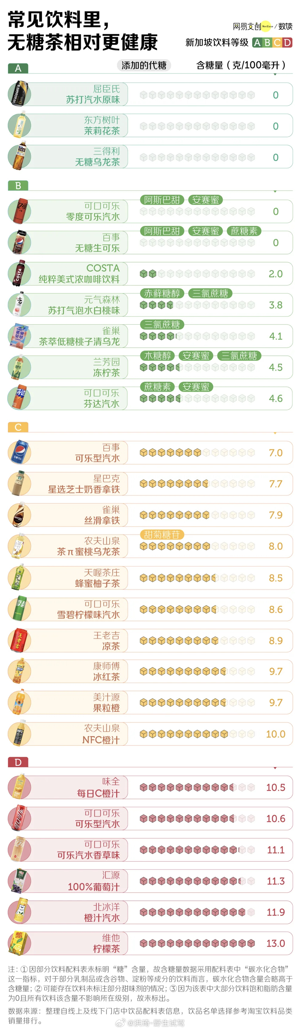 网易数读饮料分级图挺好的,控糖控糖!但控不是戒,适量吃点糖还是代糖也无妨。反正生活已经够苦了,有时还是需要一杯简单的甜饮料使人快乐