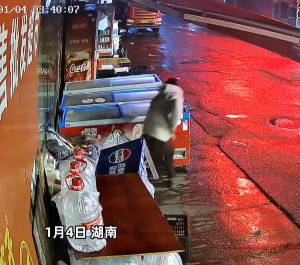 没见贼吃肉,只见贼挨打! 1月4日凌晨,湖南湘潭一超市老板,在自家超市前蹲守2天,终于逮到小偷。 据老板说,超市外装的饮料冰箱,隔几天就会被偷几瓶饮料,连着半个月被偷了七次,实在忍不了。 蹲守2天,在1月4日凌晨3点多,发现一个男子戴着口罩打着伞,鬼鬼祟祟凑到超市冰柜前,熟练的偷饮料。 被藏在暗处的何先生抓个正着,抄着根木棍上去就打,后将小偷制服,报了警成功把人送了进去。 有点丢人,几瓶饮料能值几个钱,用得着多次去同一家超市偷,俗话说,莫伸手,伸手必被抓,这就是教训。 对此,有网友说:“小偷固然可恨,但老板持棍打人也不对,要负责任。” 也有网友说:“老板就一个人,做法冒险,万一小偷持有利器就麻烦了。” 老板解释说,那棍子是小棍子,打人不受力,让小偷疼一下长记性,自己不要赔偿,就想让小偷接受法律制裁。 大家觉得老板做法对吗? 小偷有多猖狂 店铺盗窃