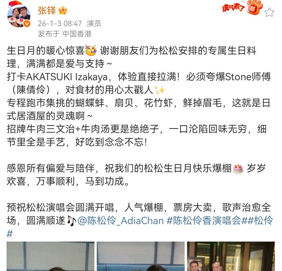 张铎真是个好老公呀! 陈松伶54岁生日,他发文不但感谢朋友为松松准备生日料理,