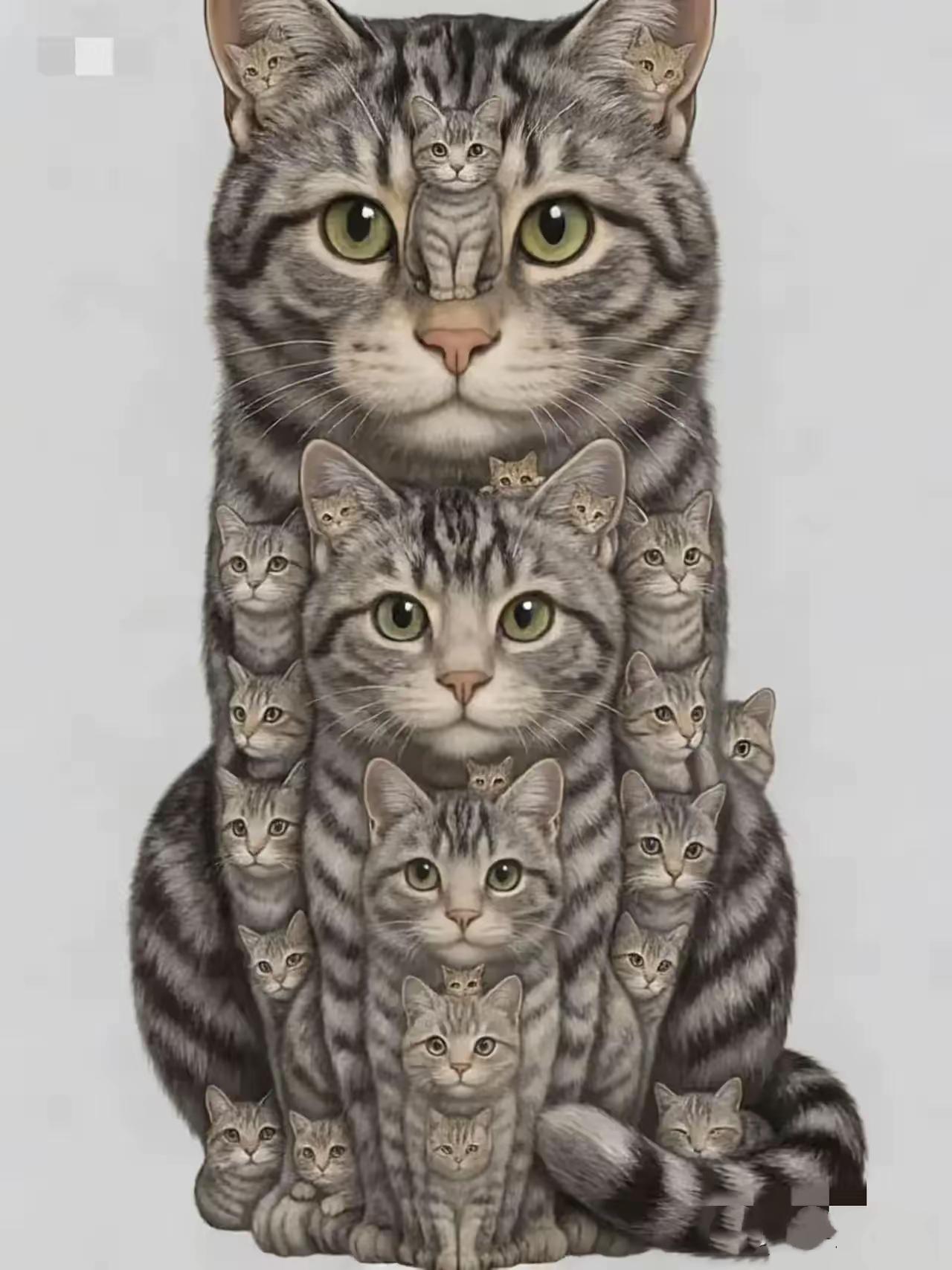 一共多少只?谁能数清楚? 网友评论: 二十六只猫 25只猫 我看见是二十八只猫咪