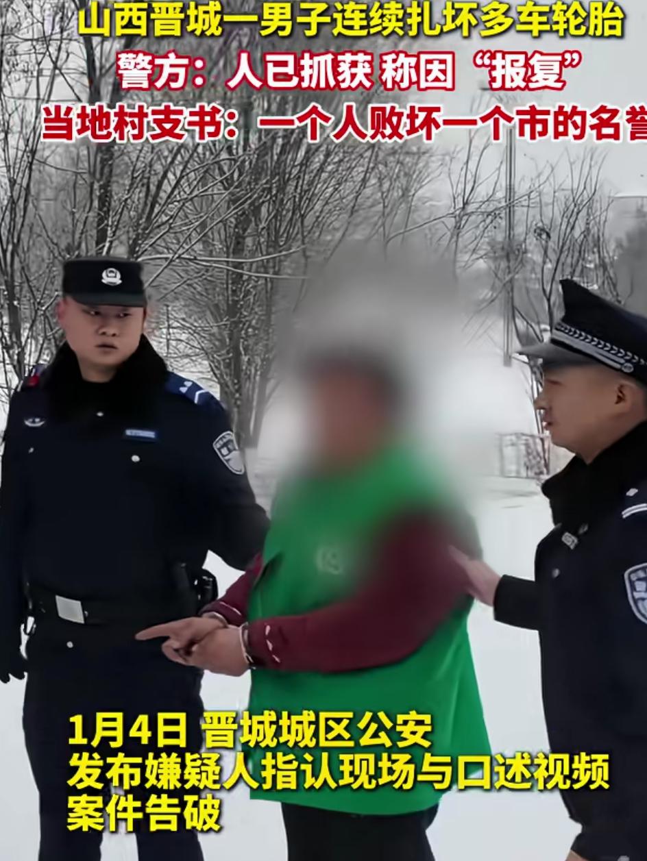速度够快!山西晋城司徒小镇扎轮胎的人被抓住了! 涉事者是一中年男子,听口音不是当地人,自称酒后“为报复”故意作案,用了把生锈的剪刀,作案后藏于花盆里。 这理由听起来很勉强,景区有游客来玩是好事,不明白为啥酒干这事,报复谁?喝了酒还知道藏工具? 景区这个停车场,是个临时停车场没有收费,据当地人说,其实是要收10块钱停车费的,也因此小镇书记对此事的处理也很到位。 不仅免费修轮胎,还赔偿游客1千元损失,一条轮胎按500元算,二十条轮胎达到一定的损失额度,属于刑案。 扎胎的动机让人不免生疑,没有利益纠葛只是酒后为之难以让人信服,酒后扎几十个轮胎,容易暴露,难免有车辆有哨兵模式,不知道涉事者咋想的。 总之这么快人抓到了,为当地相关部门点赞,不怕有事,不回避不推诿有担当,工作作风干脆利索,迅速查清事情解决问题。 “一个人抹黑一座城”,从当前来看,不会,当地相当部门处理方式为游客负责着想,让游客放心舒心满意,这样的旅游景区就该红火! 晋城糟心事儿 扎轮胎